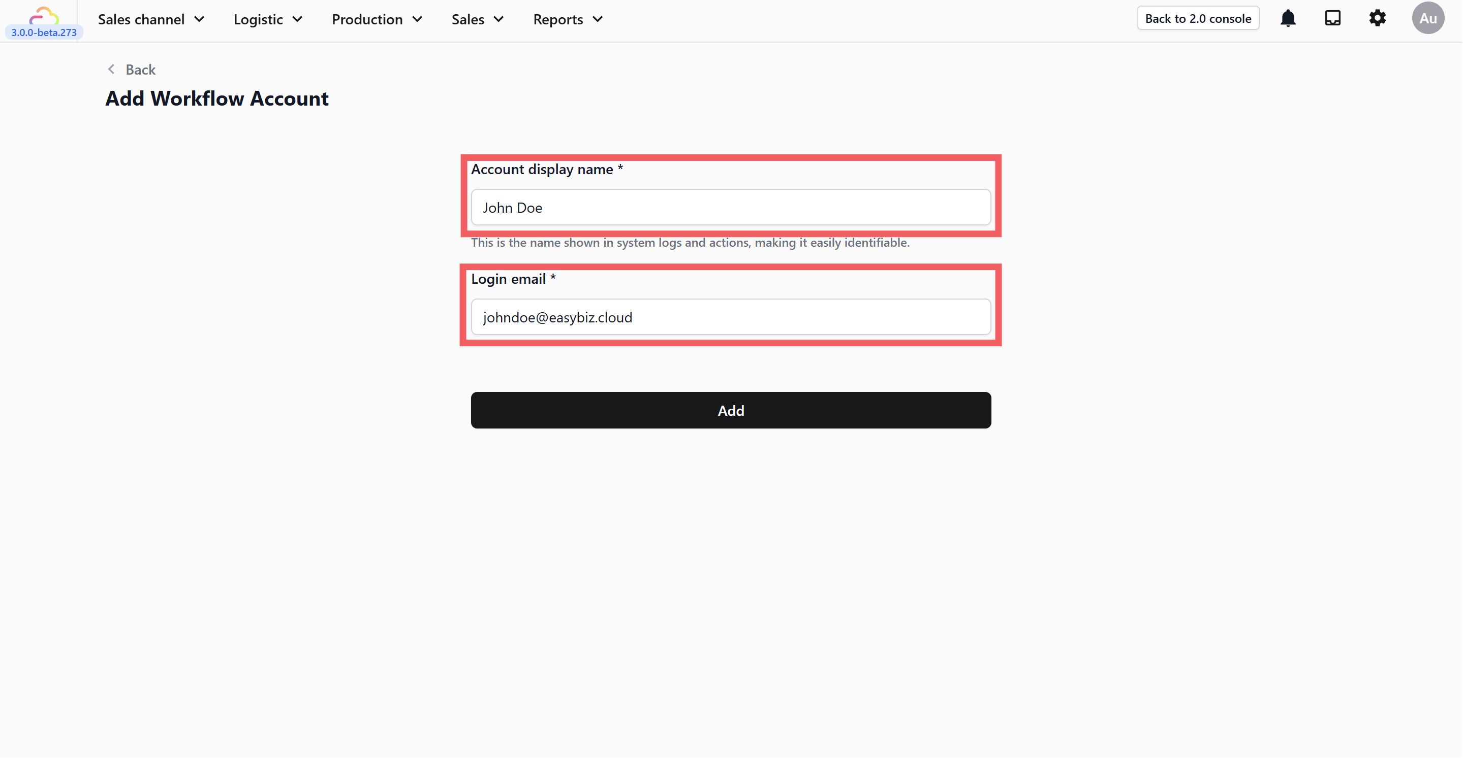 Click Add to create the account.