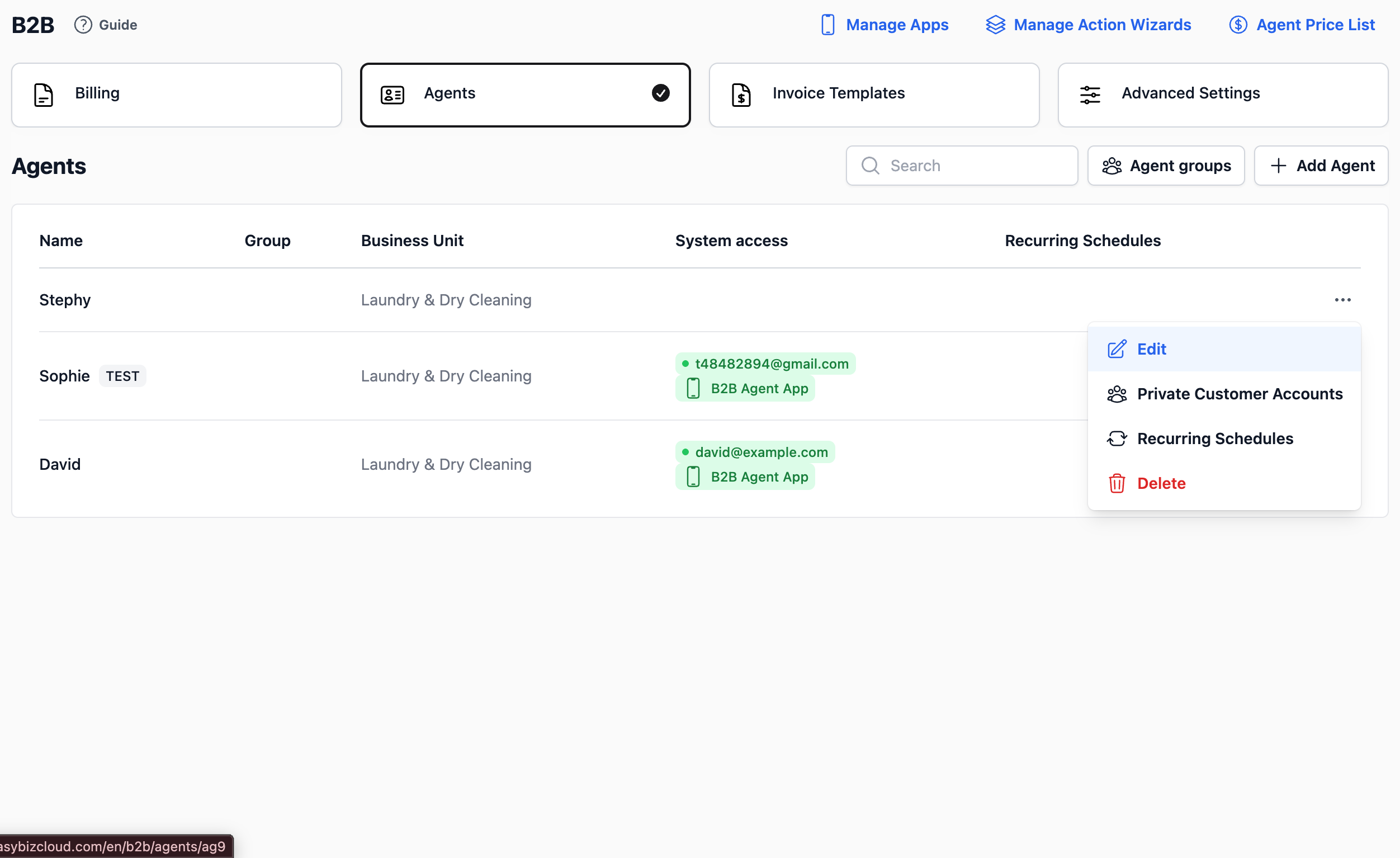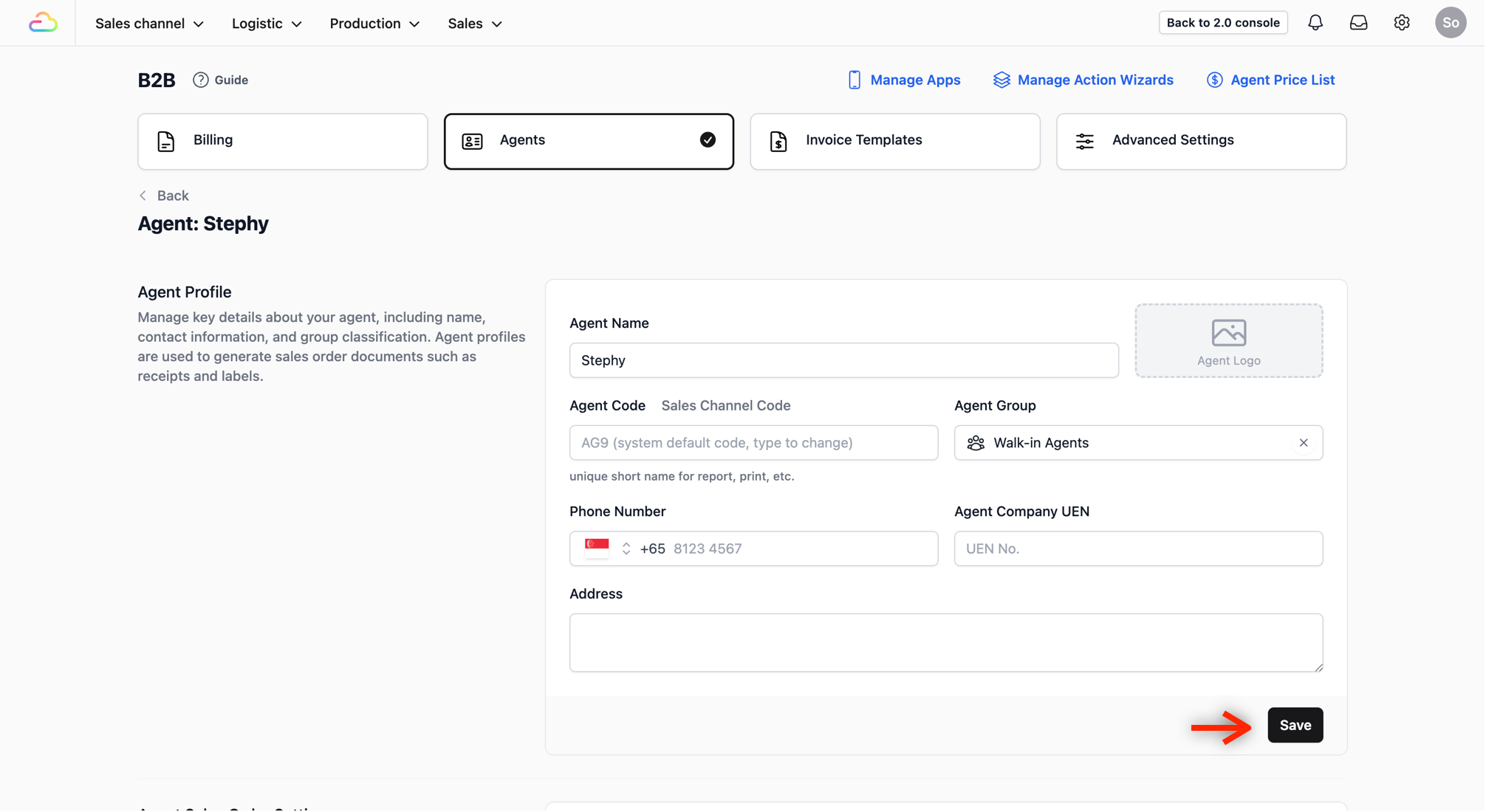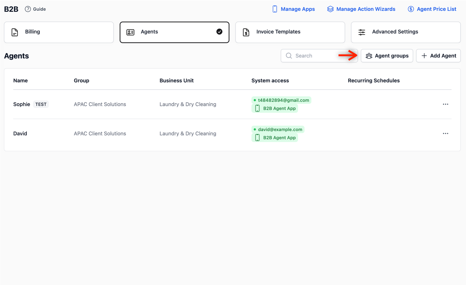 Everything related to your agents is managed within the B2B section of your system.