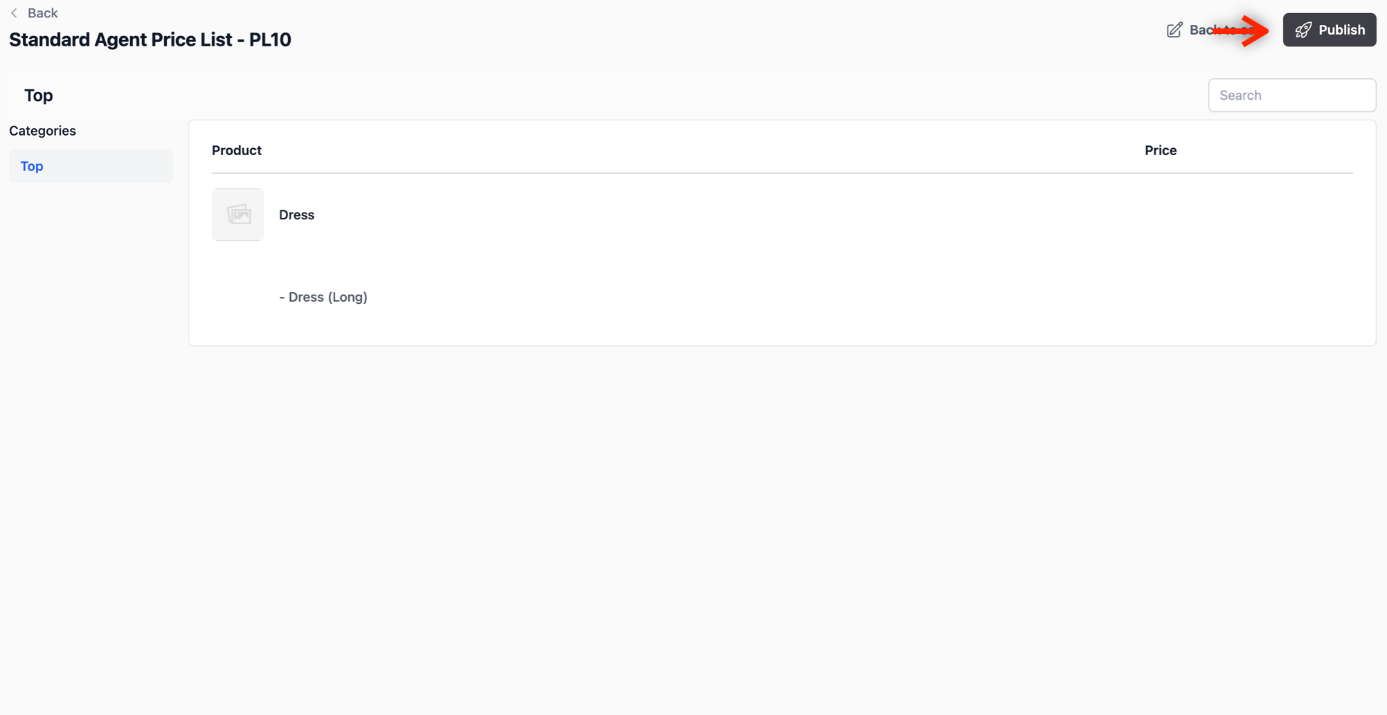 When you are satisfied with how the new agent price list looks, click on the Publish button.
