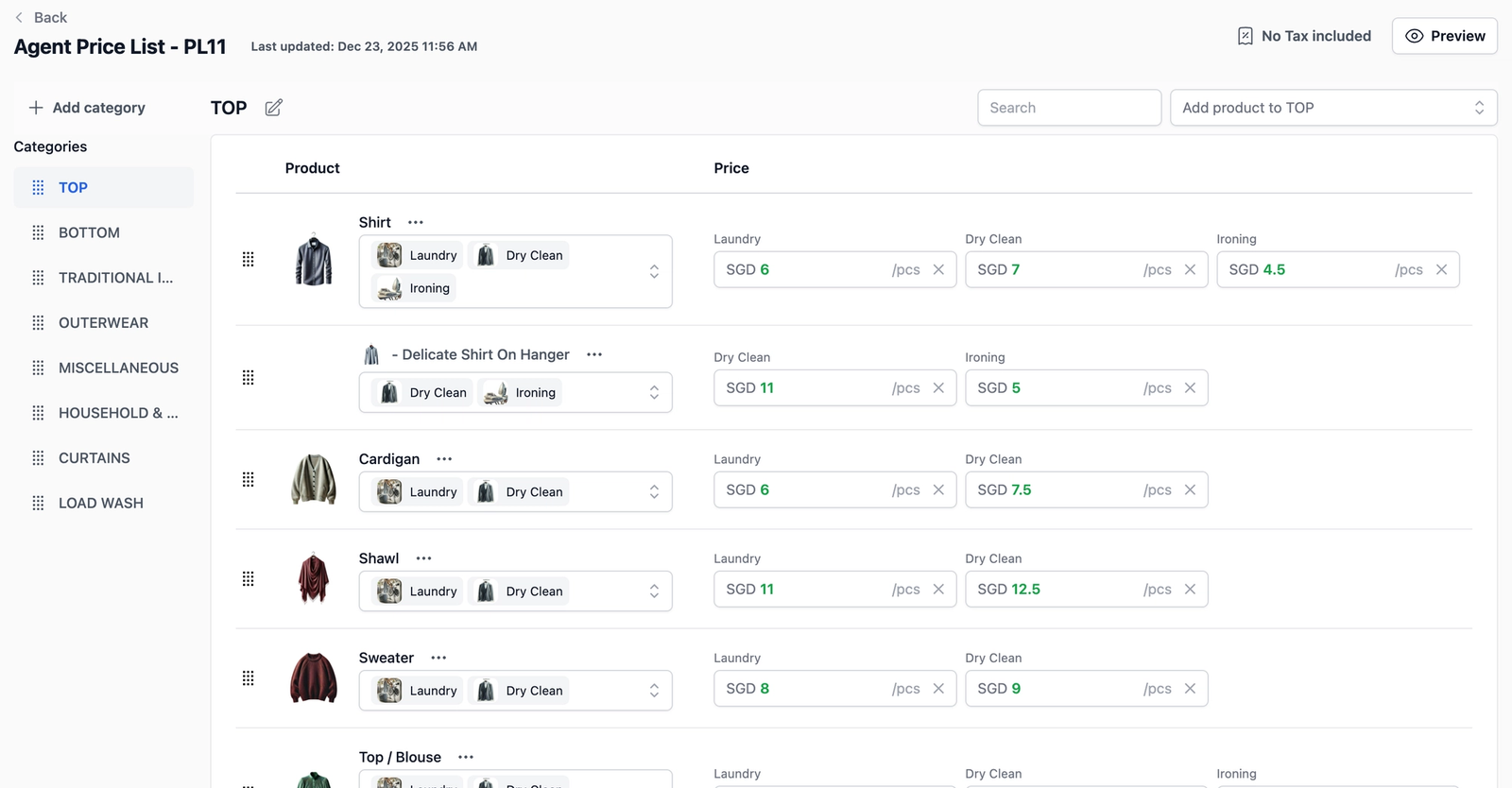 Quick Adjustments: Once you click the Create price list button, the editor opens with all items and rates pre-filled. Simply tweak the specific rates that differ for this new list to match with your agent rates.