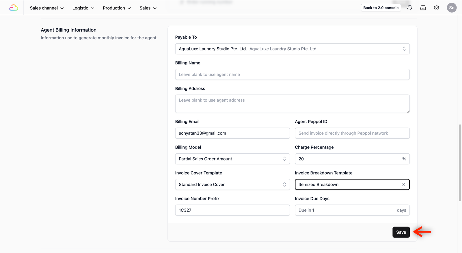 Scroll down the profile page until you locate the Agent Billing Information