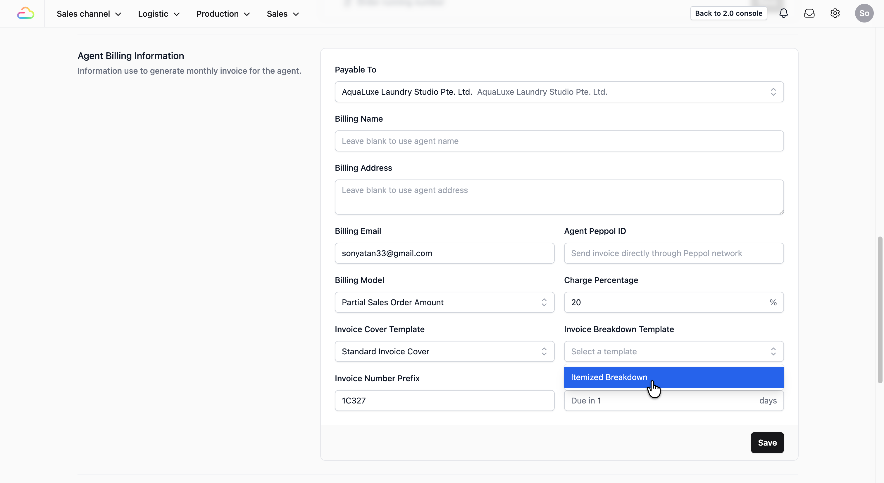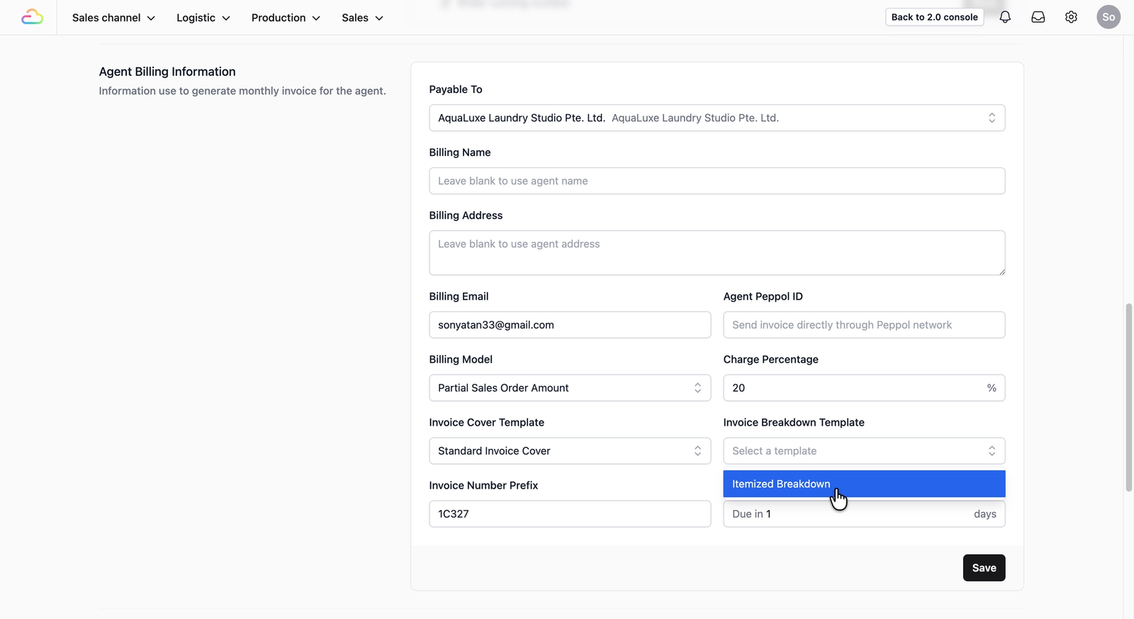 Do the same for Invoice Breakdown Template dropdown field.