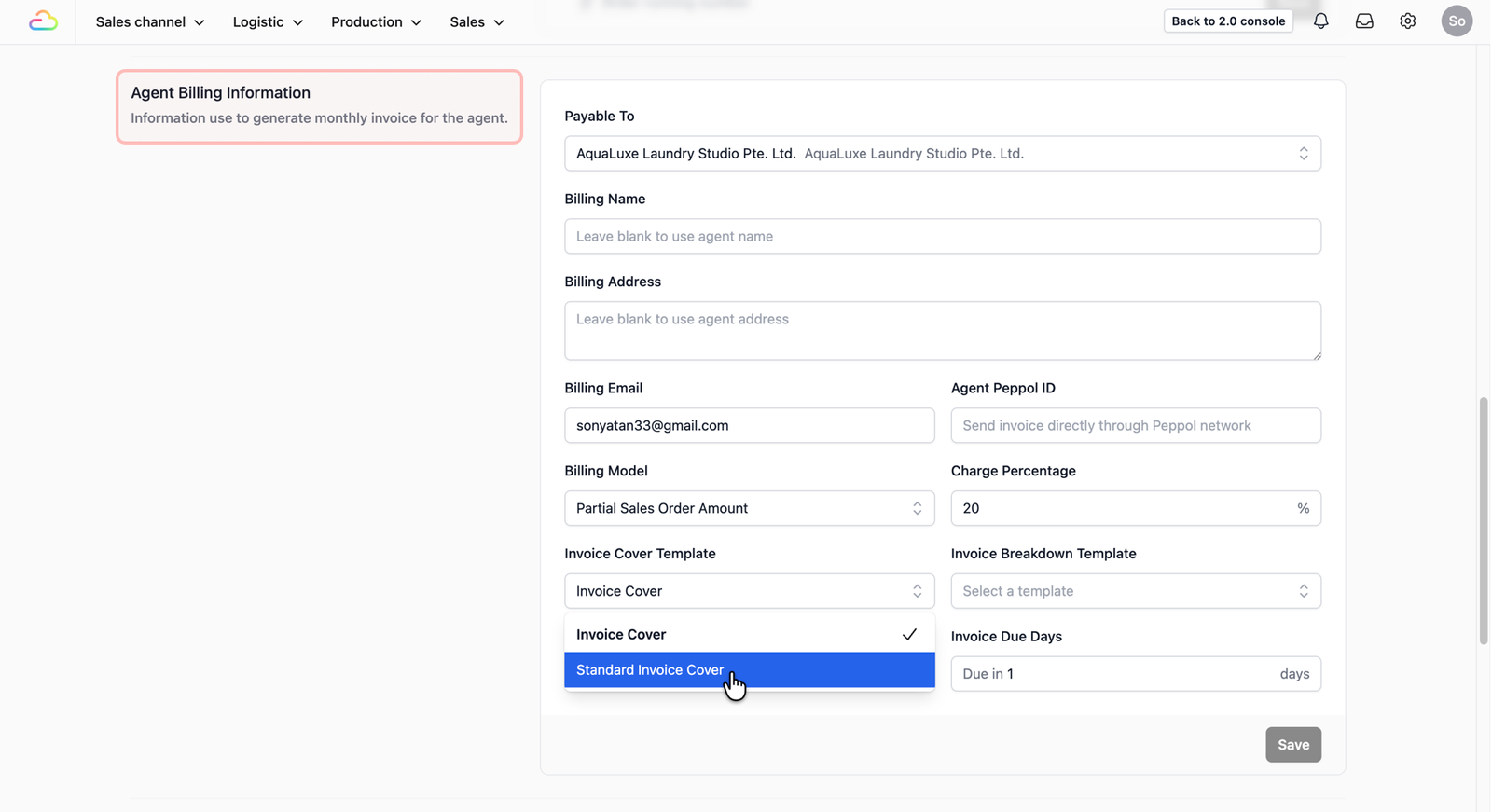 section. Under the Invoice Cover Template field, click the dropdown box and select your newly created Invoice Cover Template.