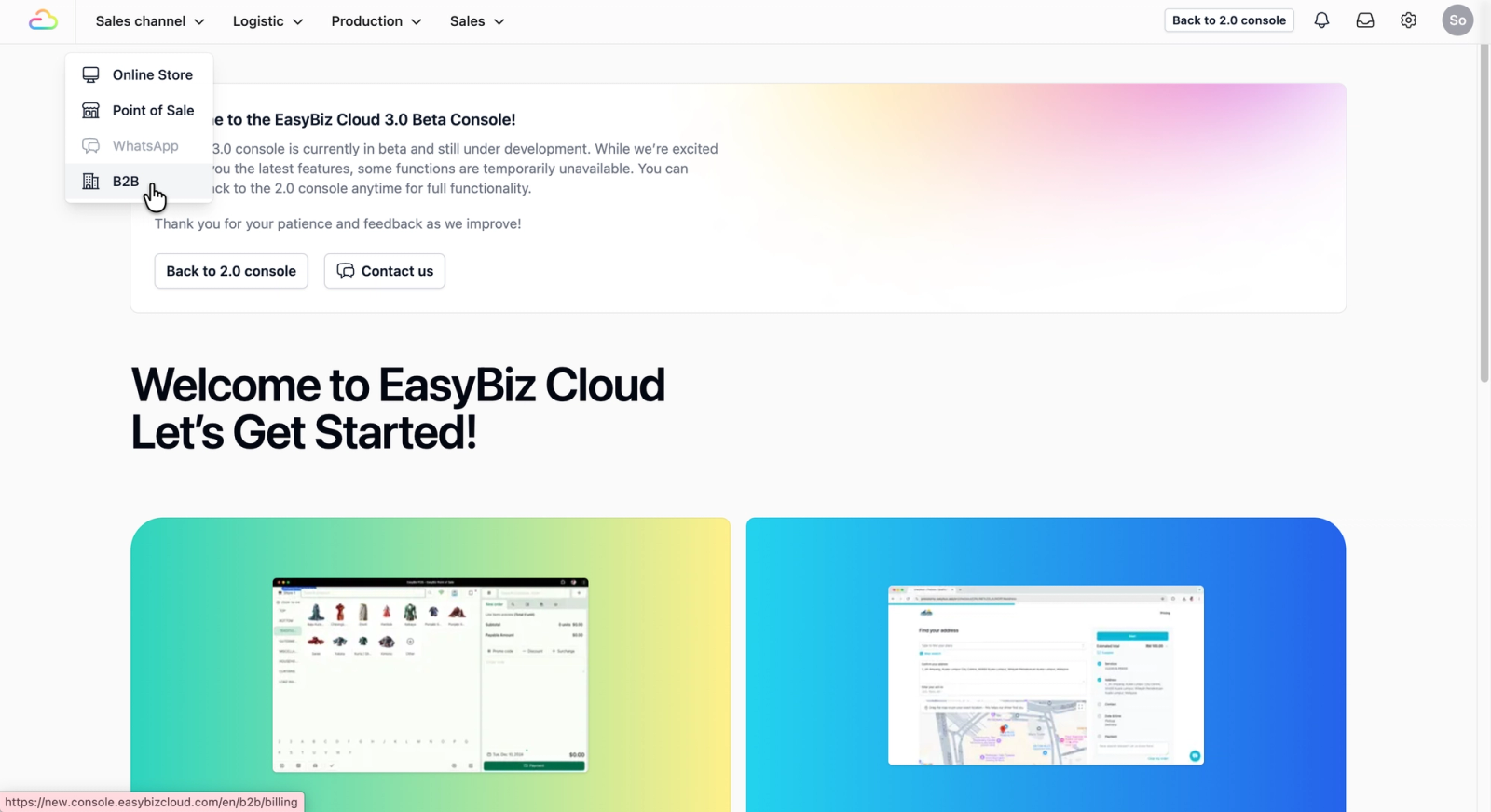 - Select B2B from the dropdown menu.