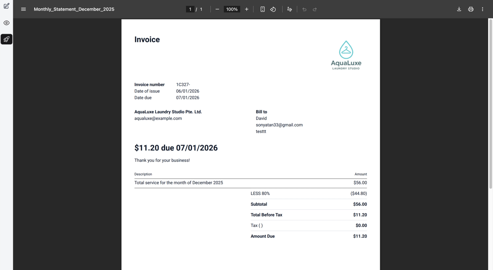 This generates the PDF view when you issue this invoice cover template to your agents.