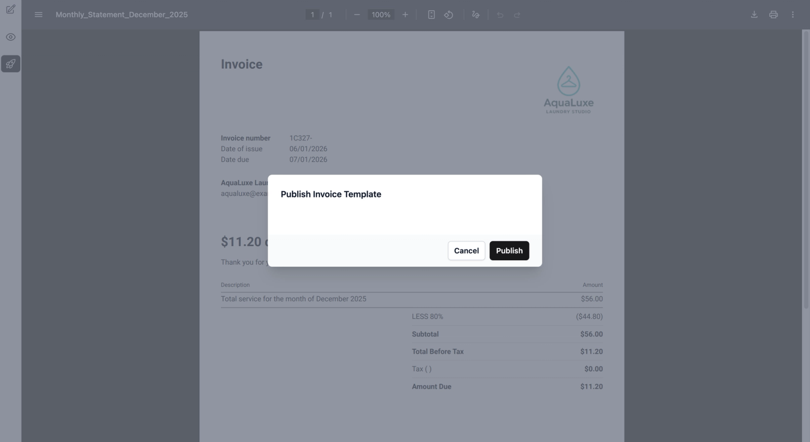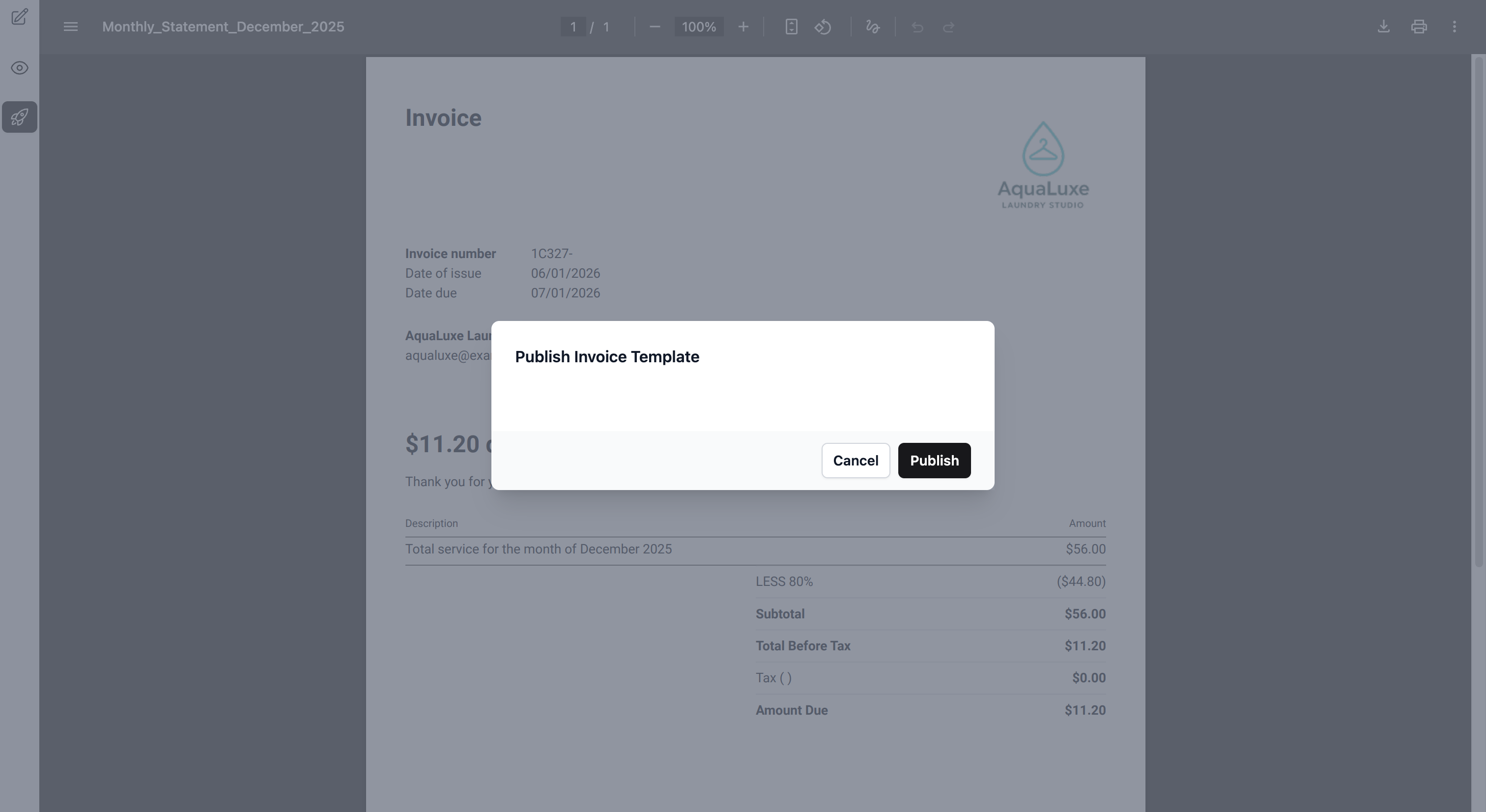 If you are satisfied with the PDF preview, click on the Publish icon.