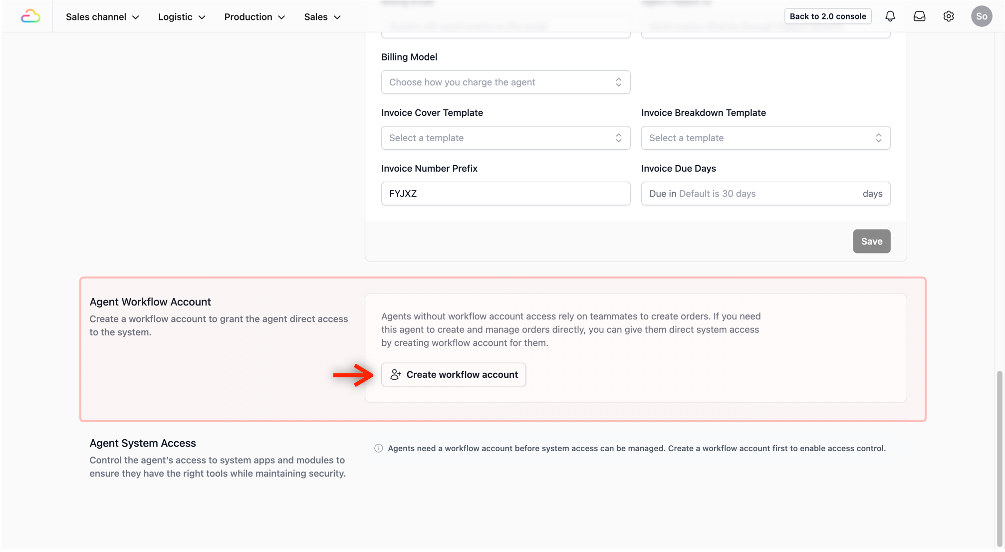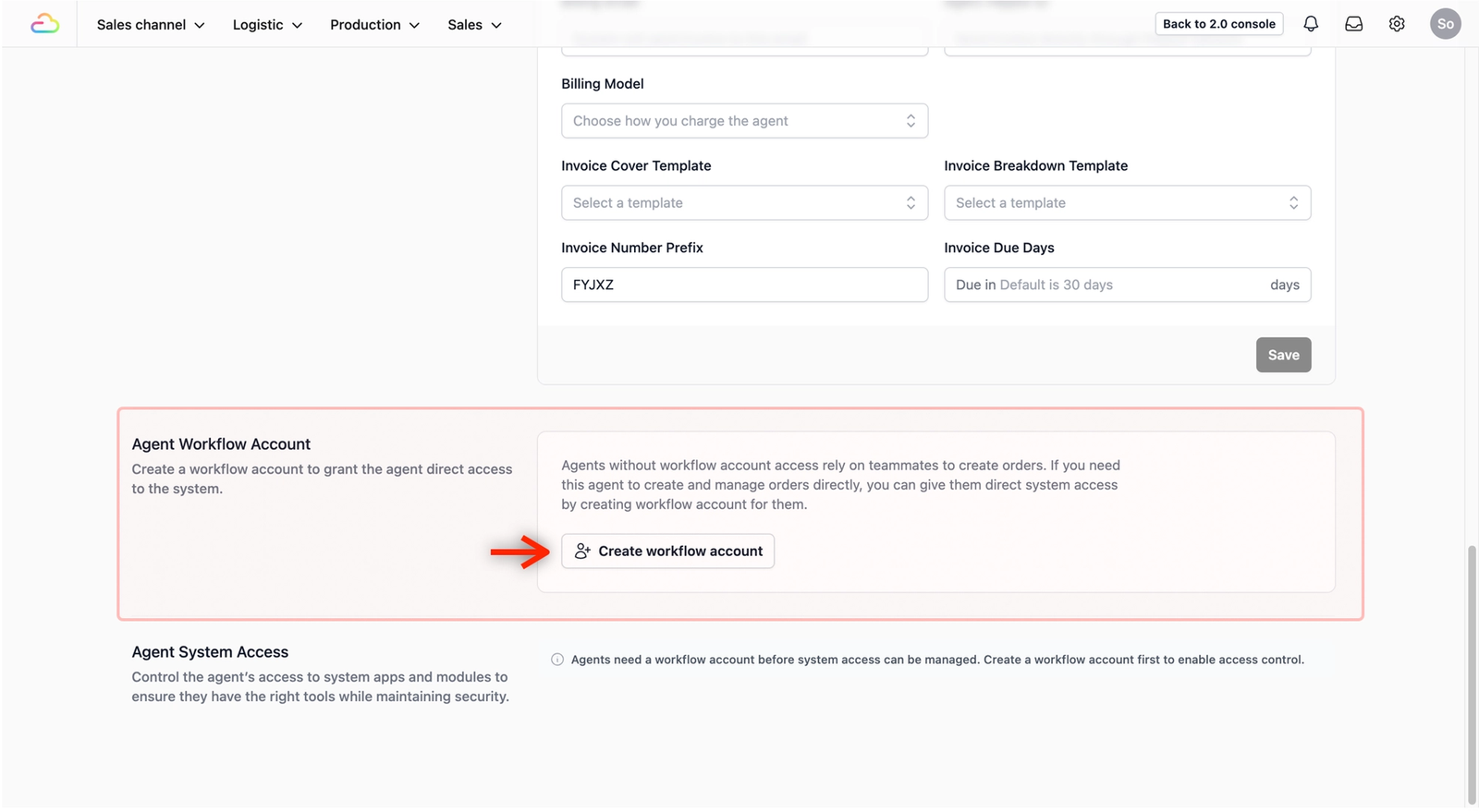 - Generate Account: Scroll down to the Agent Workflow Account section and click on the Create workflow account button.