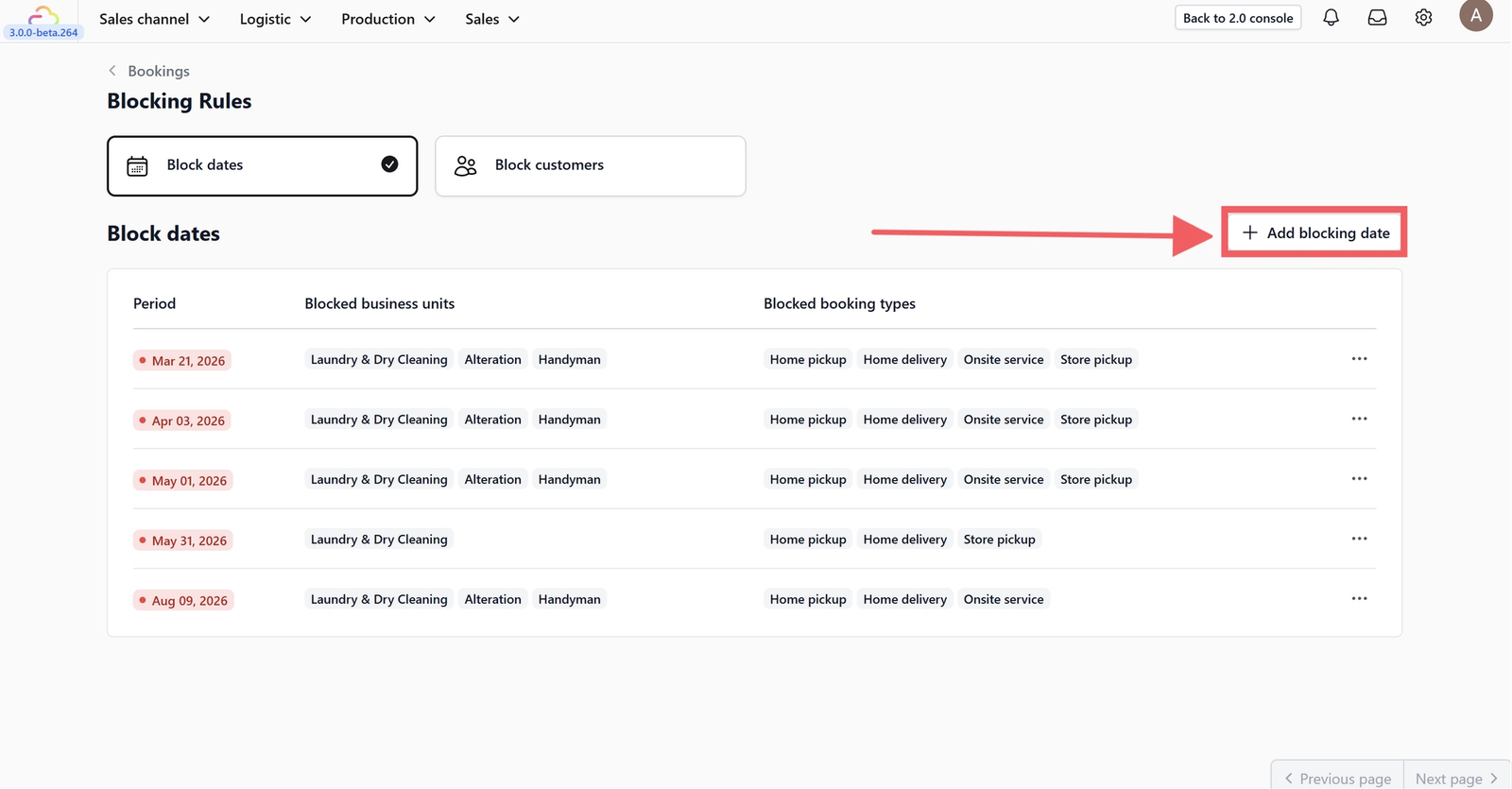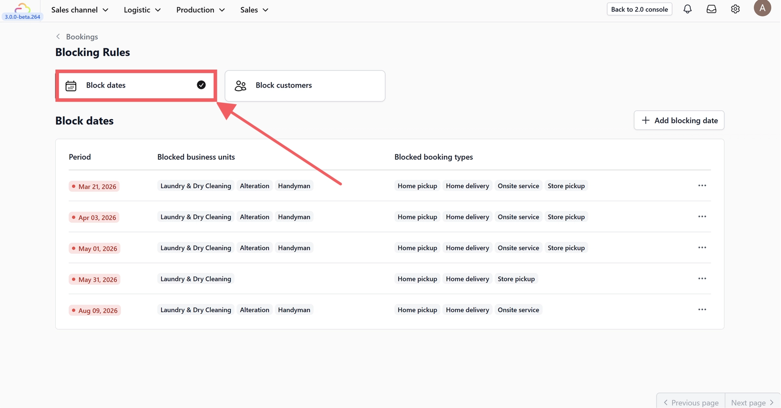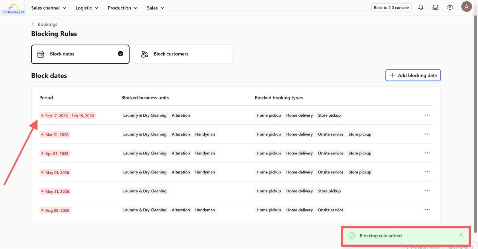 Blocking Rules help you maintain operational control by preventing bookings that cannot be fulfilled. Instead of manually managing exceptions or correcting bookings after they are created, you can proactively restrict bookings based on dates or customers.