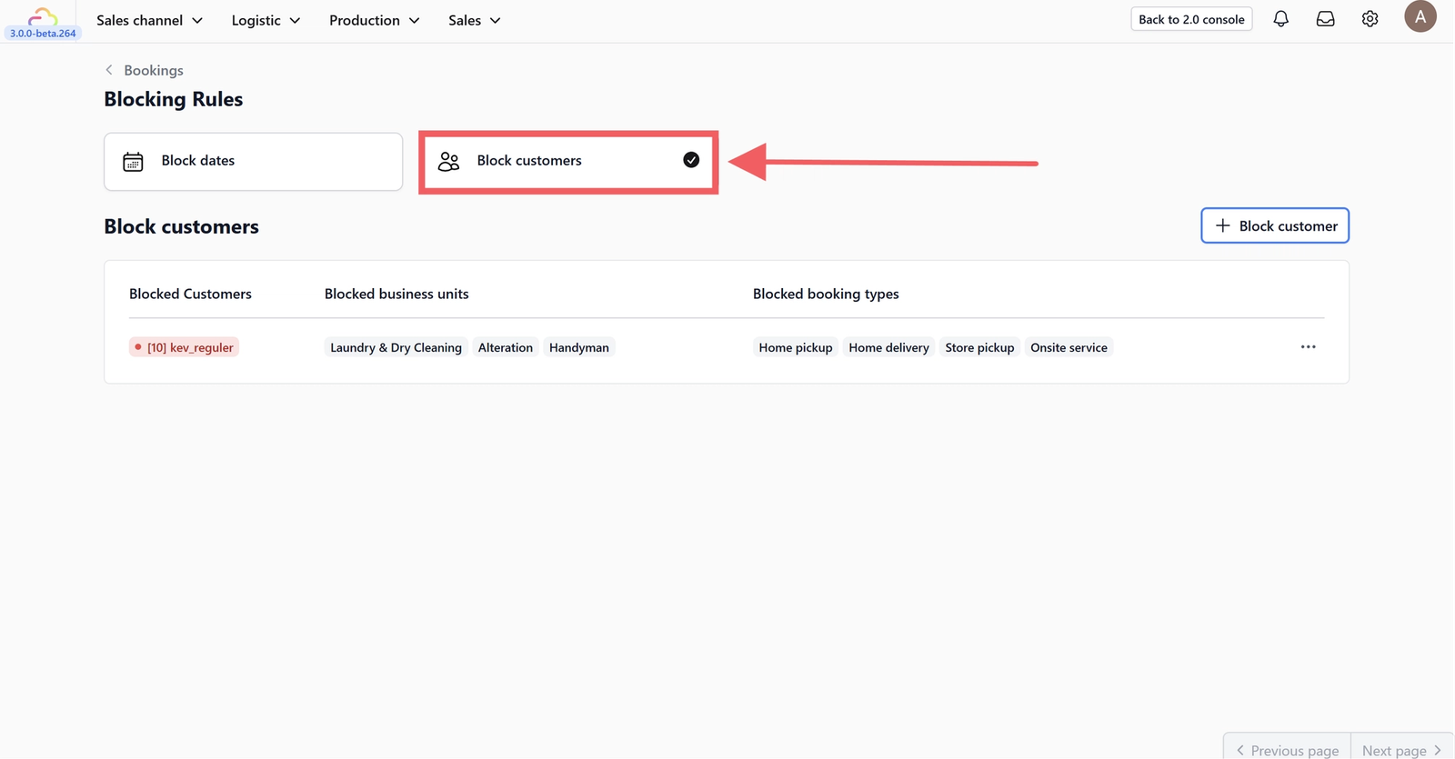 • 3.1 Blocked customers: Select one or more customers to block