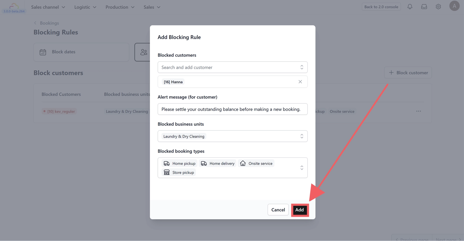 2. Click + Add Blocking Customer.
