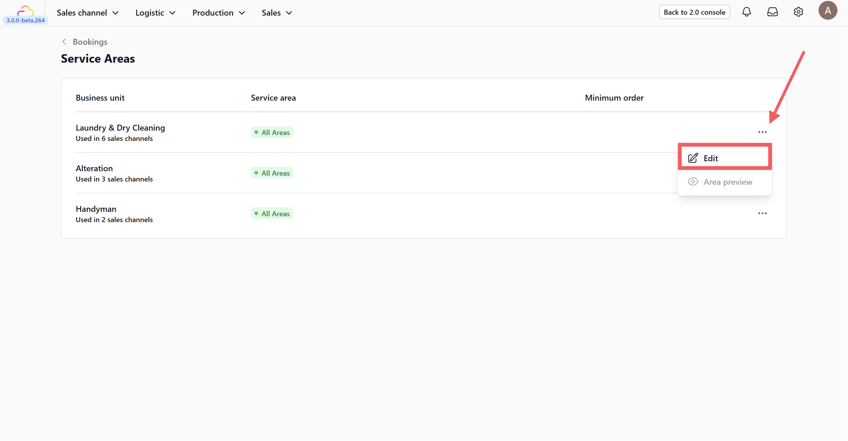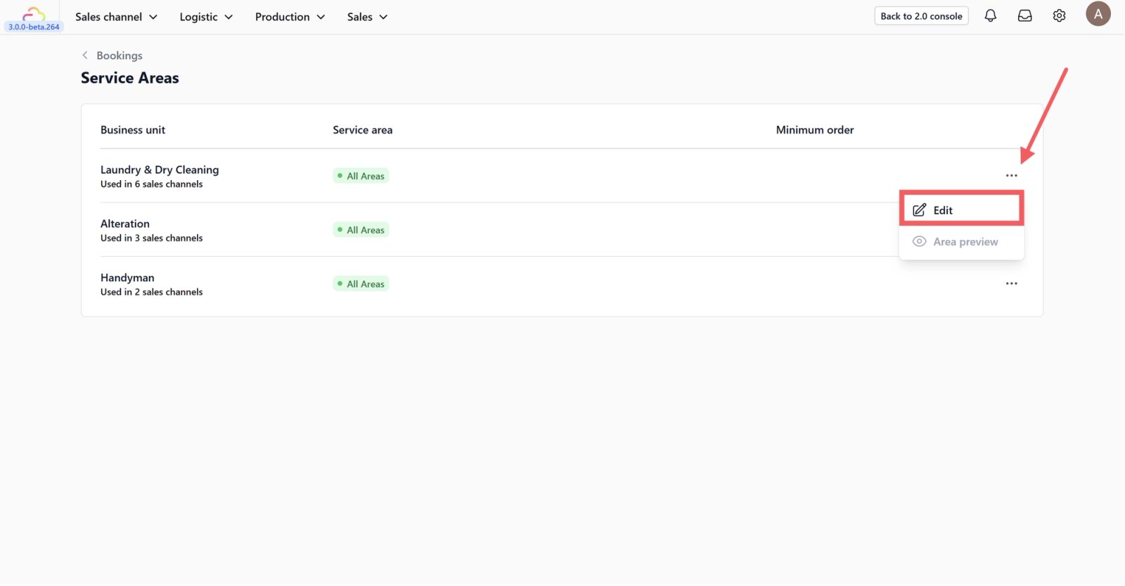 2. You will see all your business units listed. Click the three-dot menu and select Edit