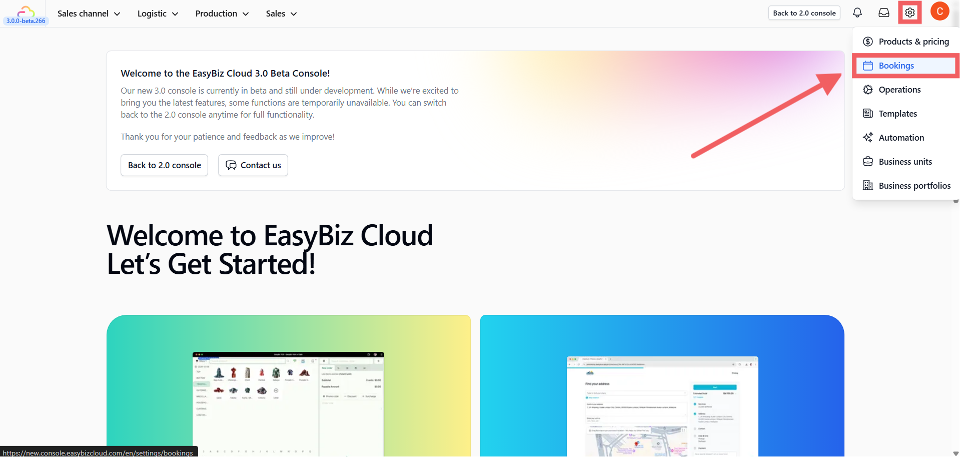 1. Navigate to Settings > Bookings