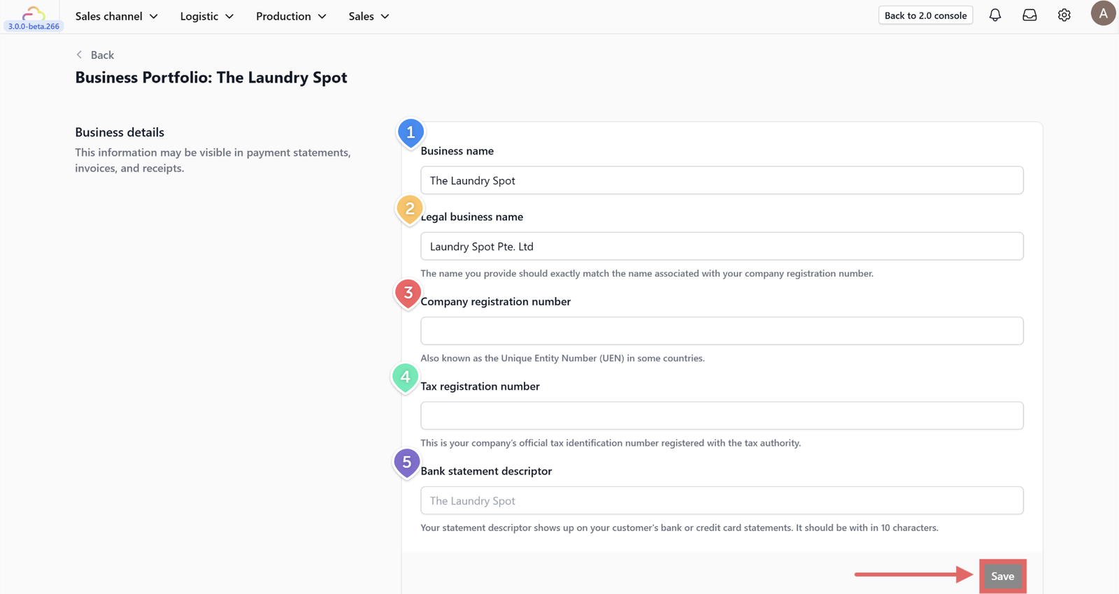 A Business Portfolio acts as the central profile for your company. Setting it up correctly is a critical first step, as this information dictates how your business appears on invoices and receipts, ensures accurate tax compliance, and controls how transactions appear on customer bank statements.
