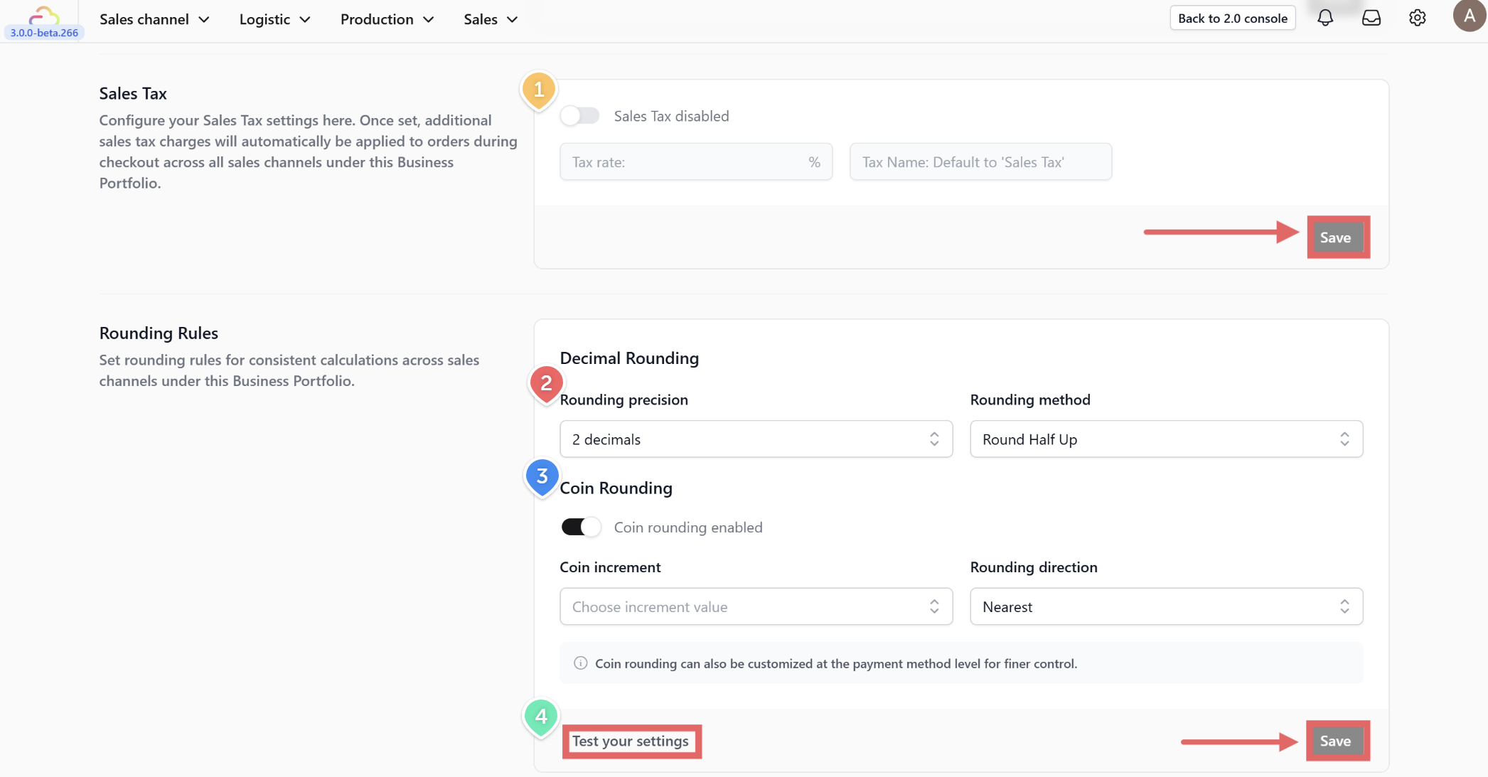 4. Test your settings to input sample amounts and ensure the final totals match your expectations.