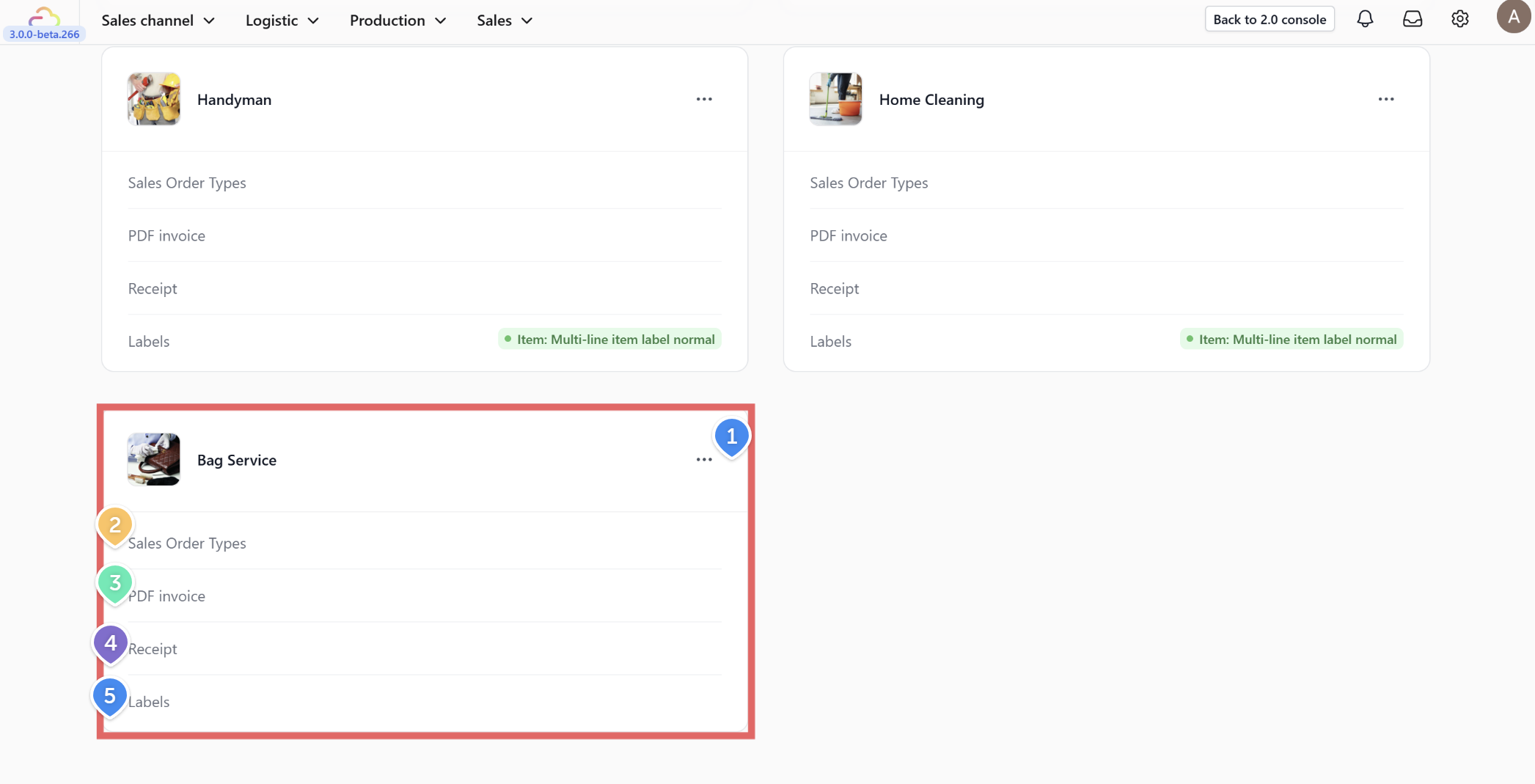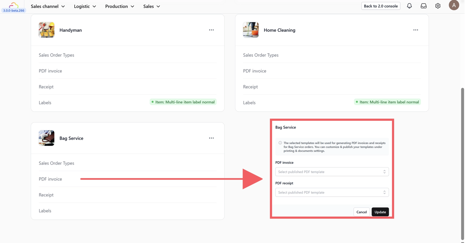- Labels: Choose the template for items and packaging.