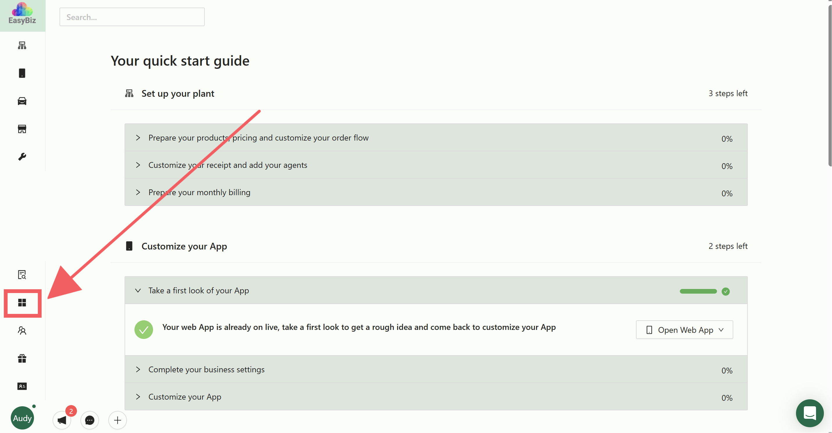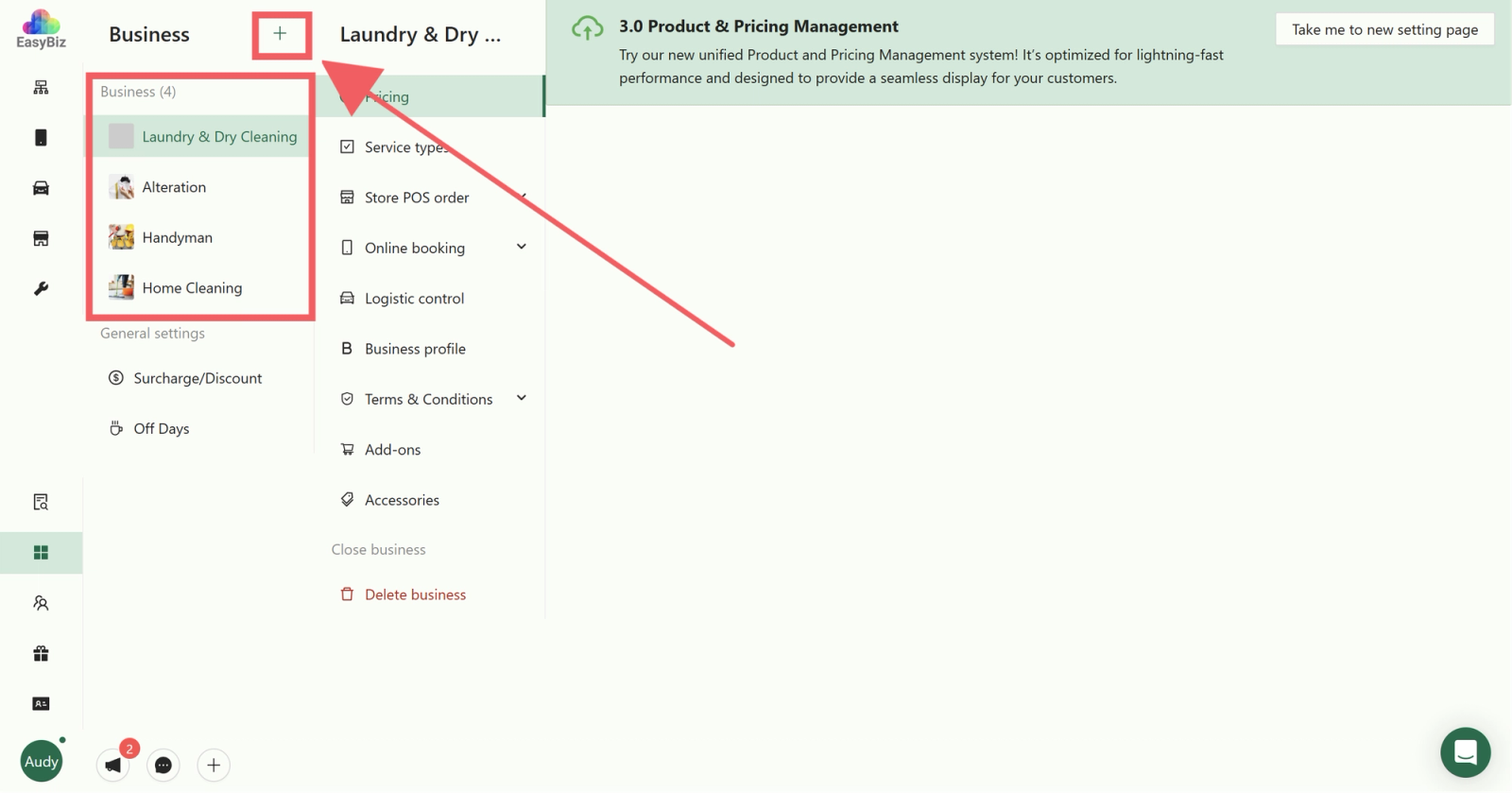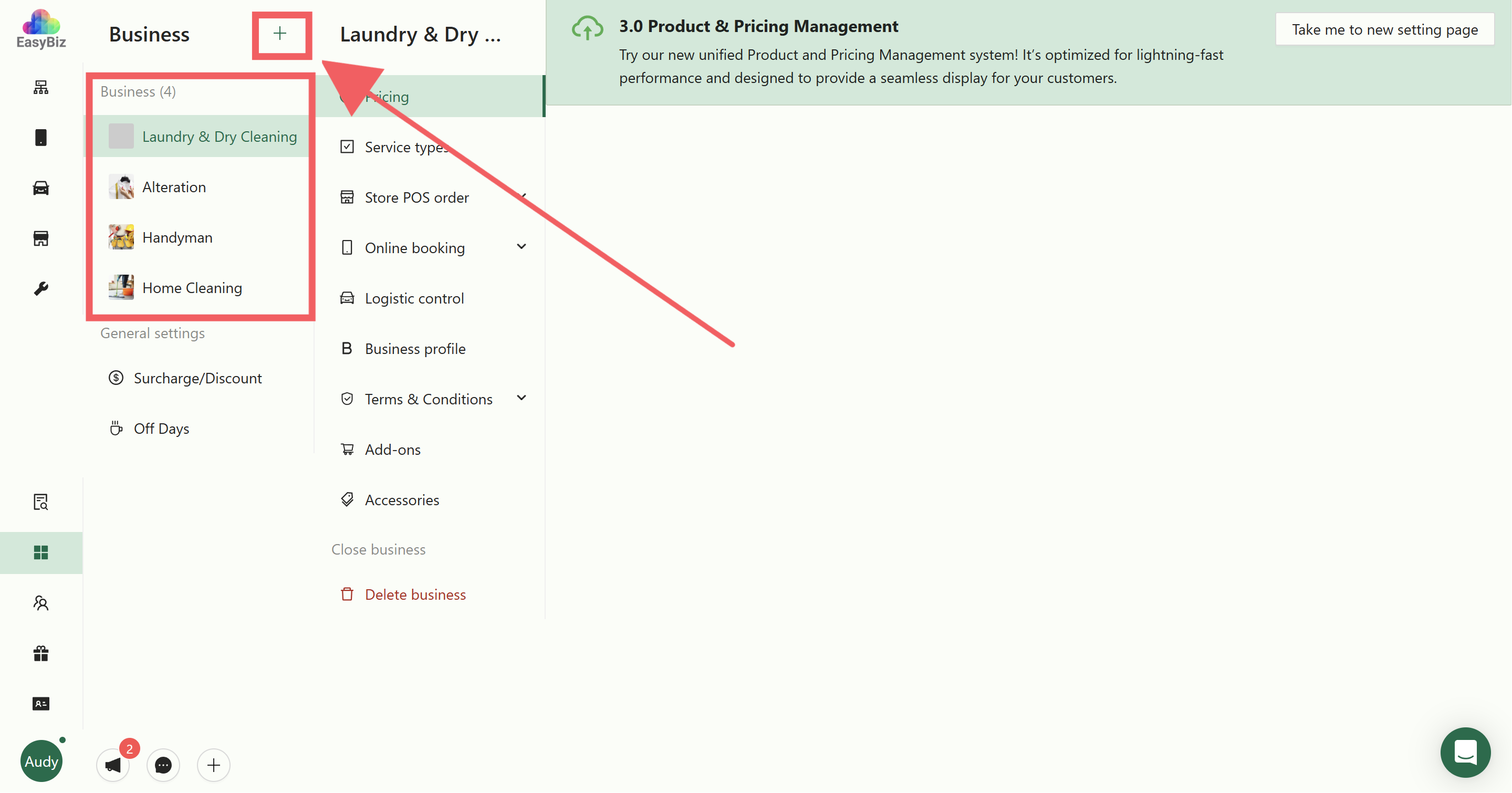 Click on the Business Icon located on the sidebar.