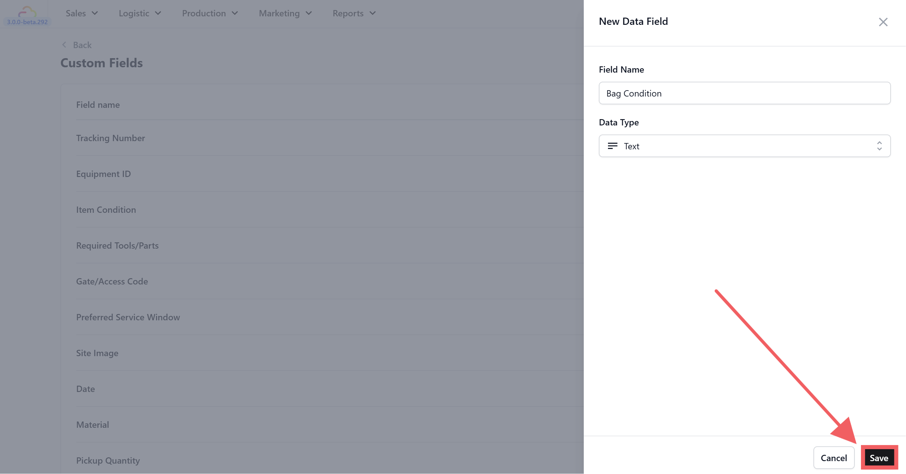 - Enter a Field Name β this is the label your team will see, so be specific. "Service Type" is much clearer than just "Type." If you have similar fields across different services, include the context in the name β for example, "Bag Service Type" and "Bag Issue" are easier to manage than "Service" and "Issue."