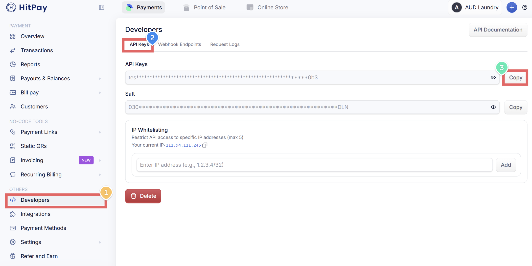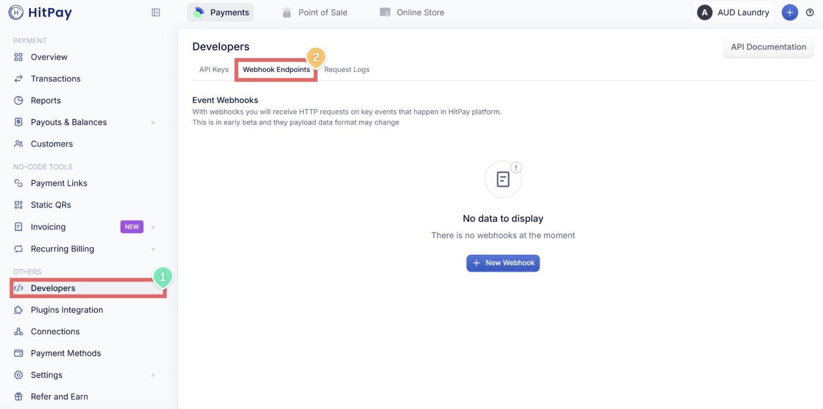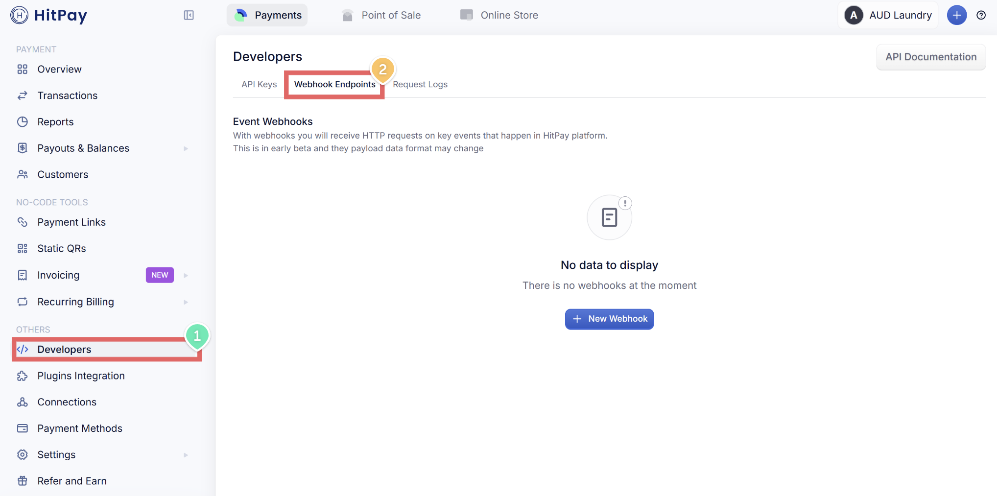 - In your HitPay dashboard, click Developers in the left menu