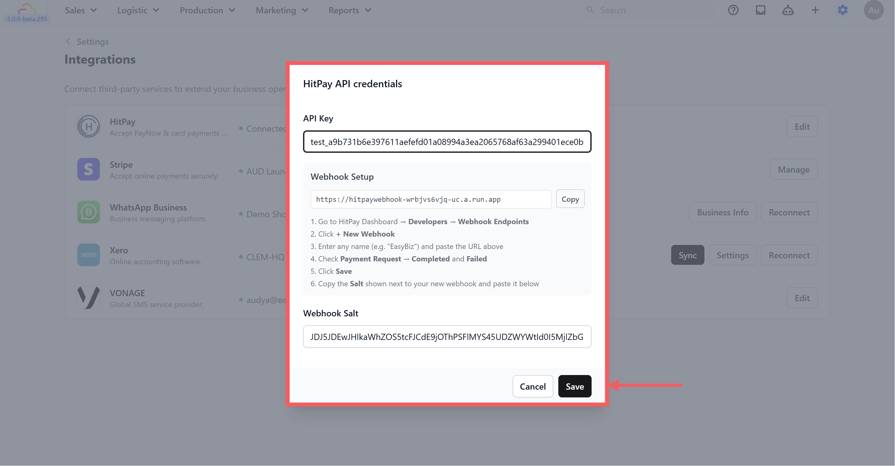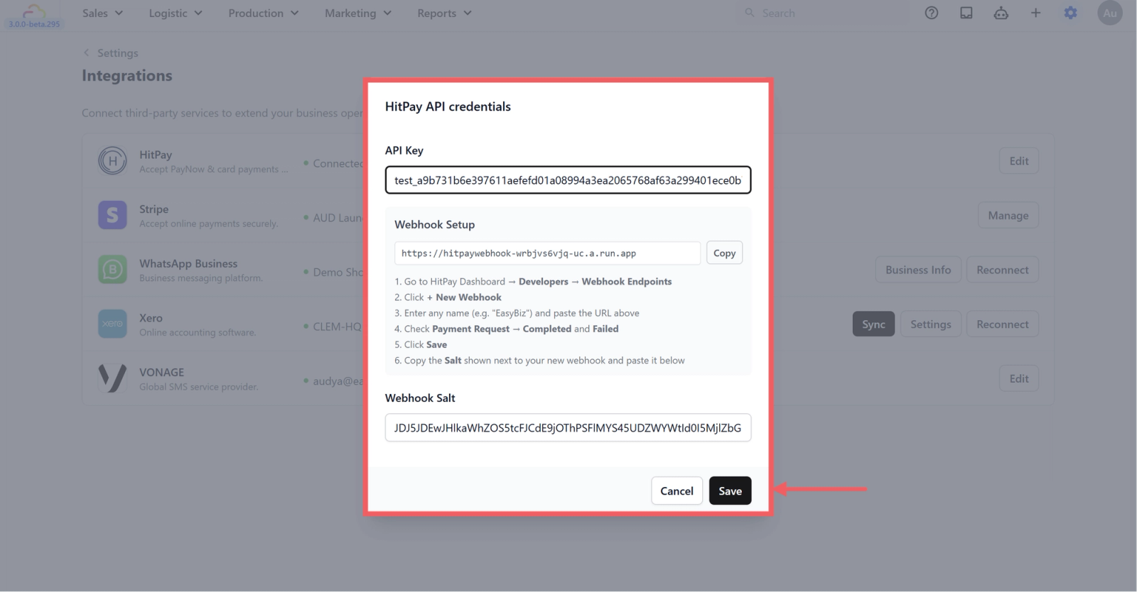 Now go back to the EasyBiz dialog you left open in Step 2. If you closed it, navigate back to Settings > Integrations > HitPay > Connect.