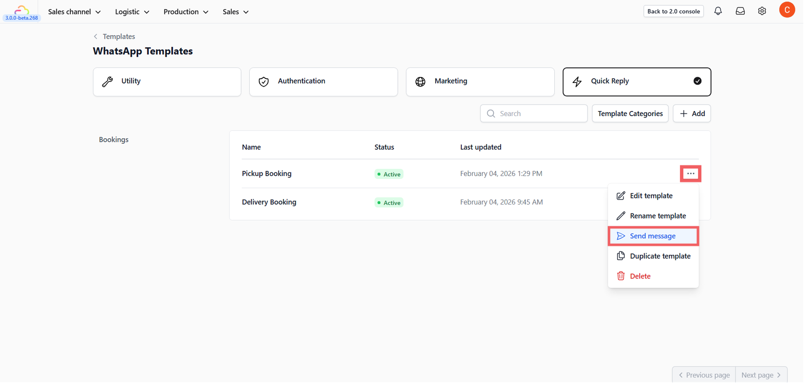 - Go to Settings → Templates → WhatsApp → Quick Reply