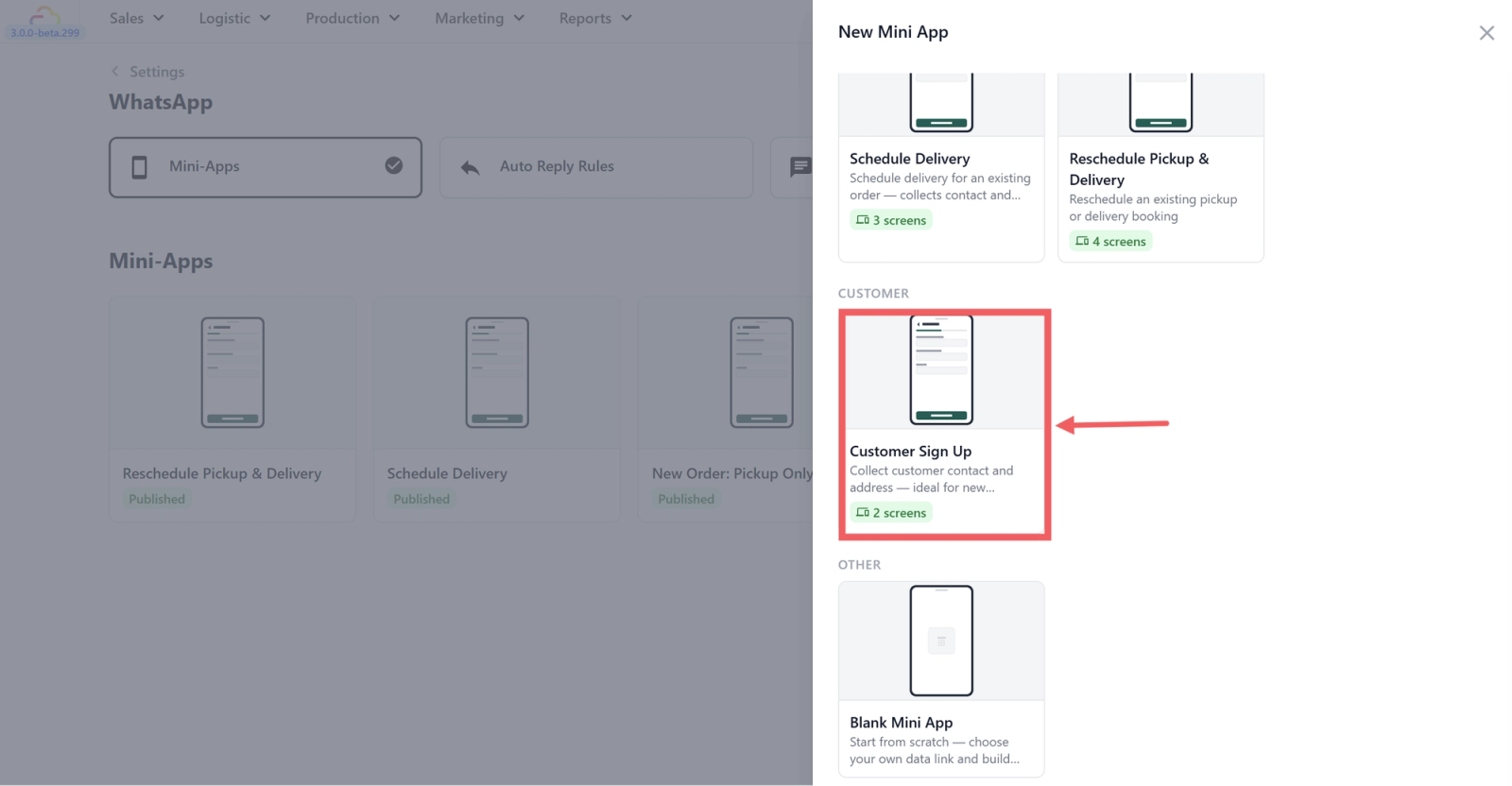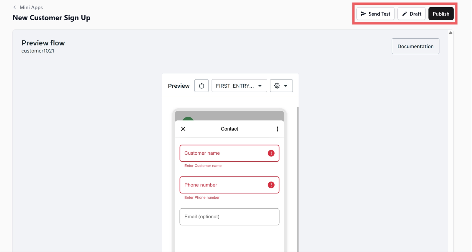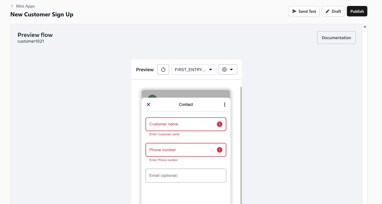 Setting Up a Customer Sign Up Mini App