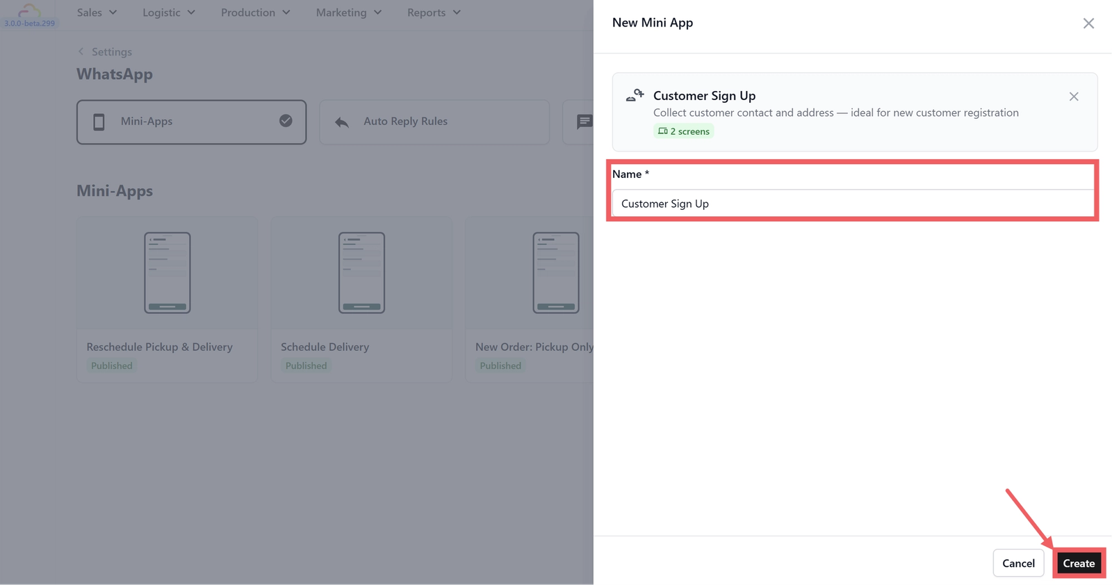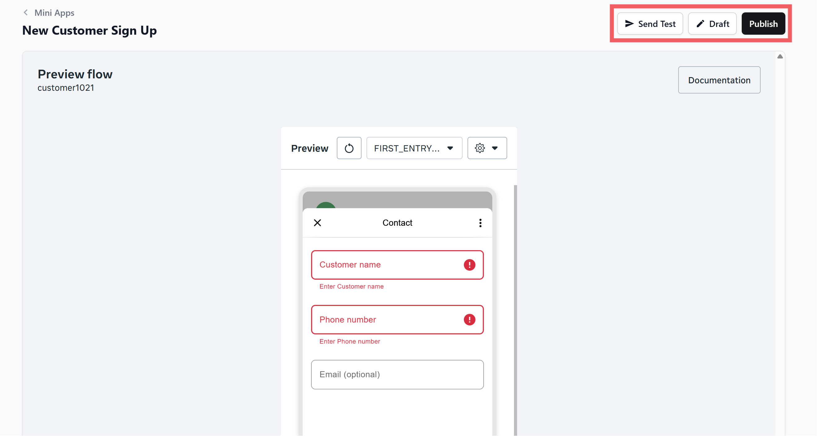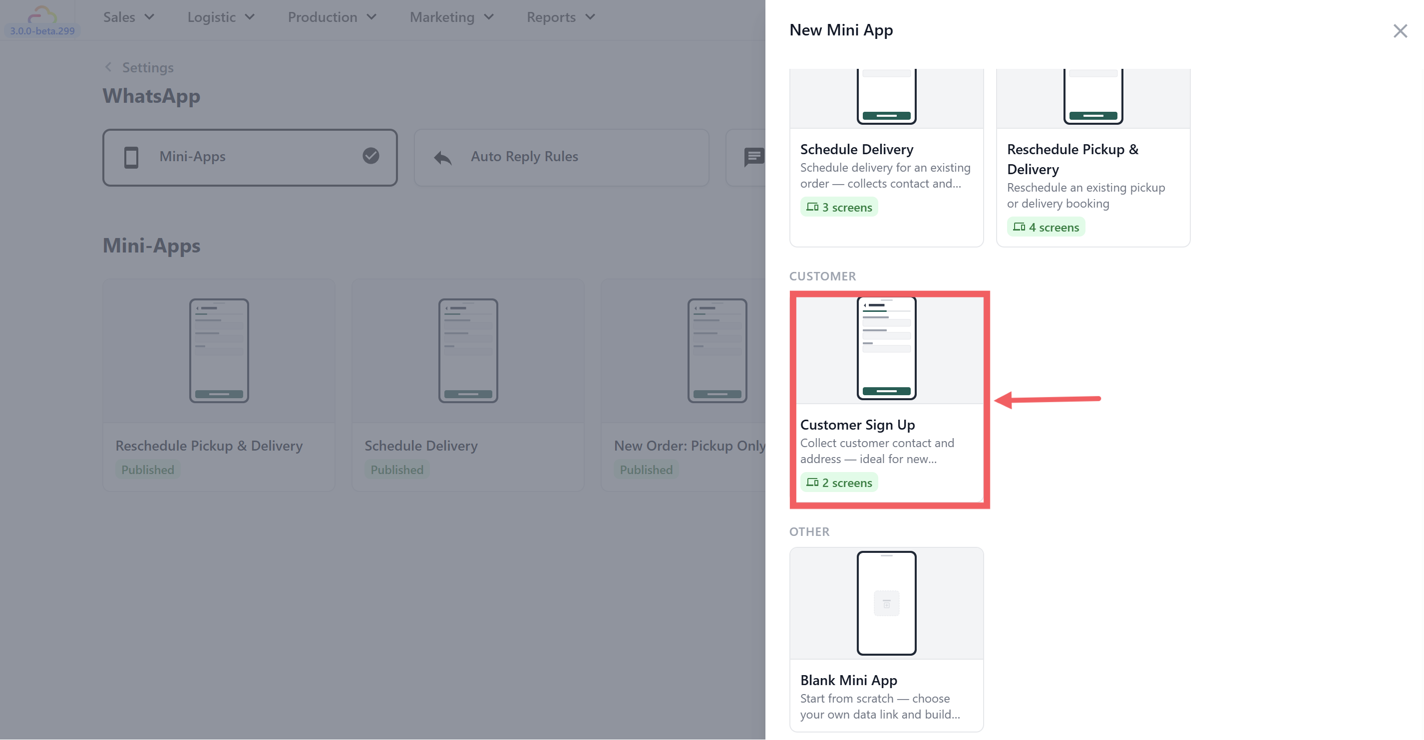 Setting Up a Customer Sign Up Mini App