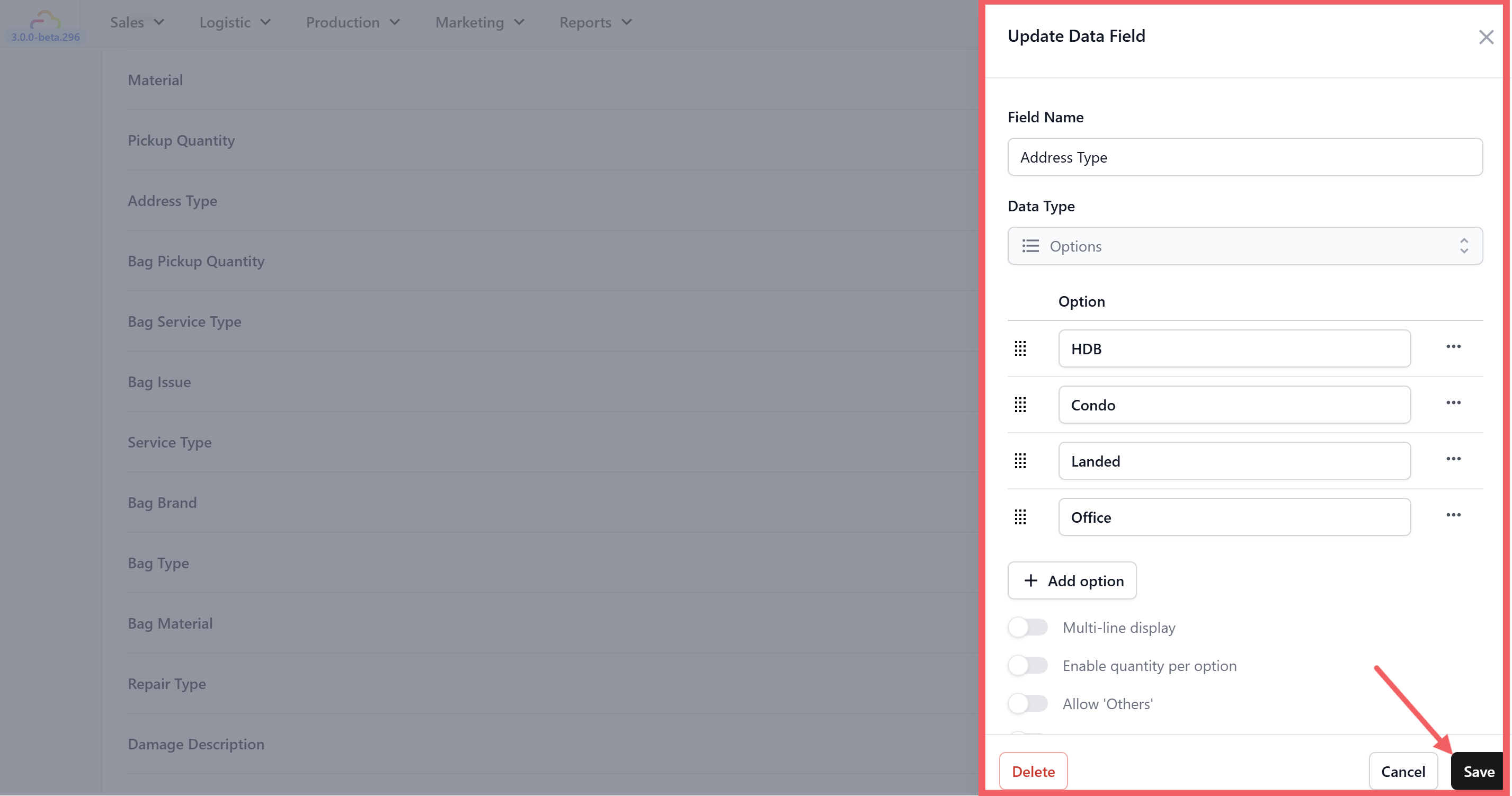 - Type in your options: HDB, Condo, Office, Landed. Click Save.