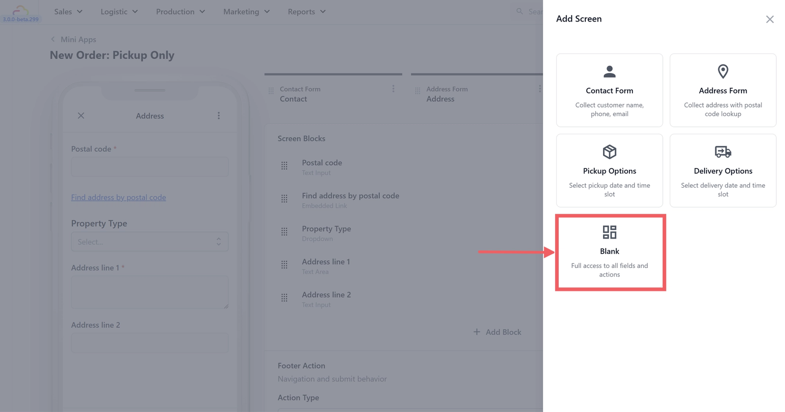 - Drag and drop this new screen tab so it sits right between Address and Pickup Date & Time.
