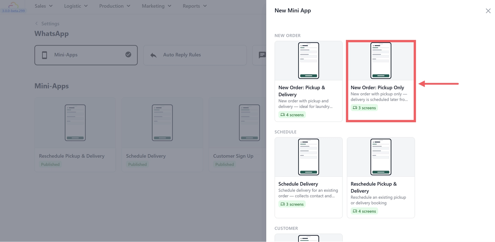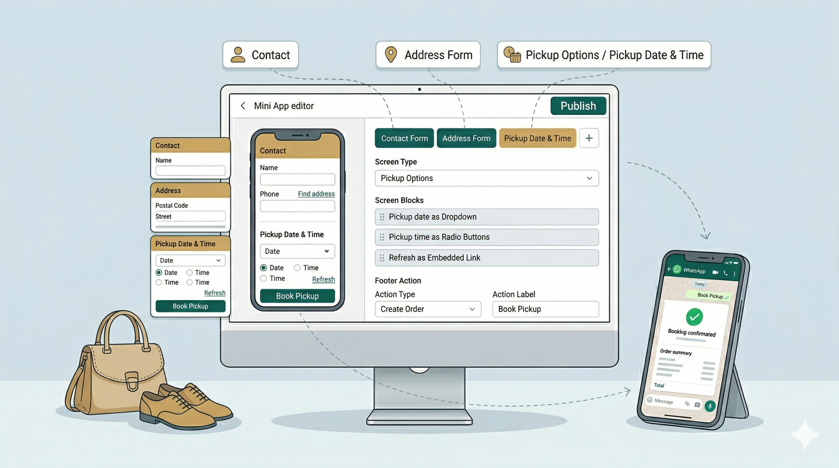 Setting Up a Schedule Delivery Mini AppSchedule the return delivery of a completed order by sending customers a booking form directly on WhatsApp.