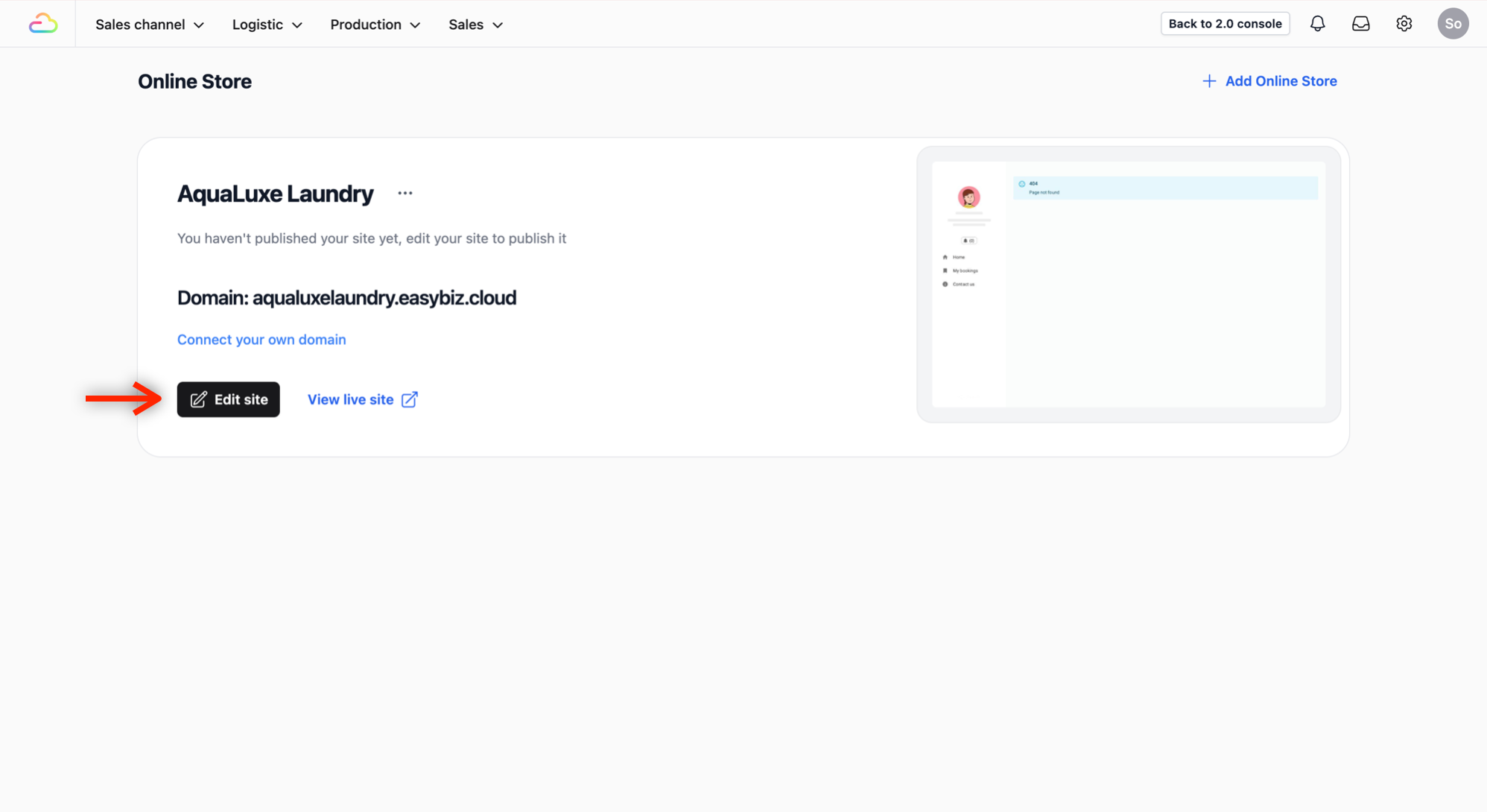 - In Online Store Page, locate your online store by the name you provided earlier.