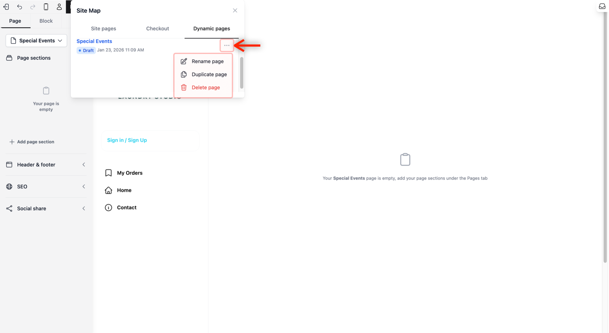 - Managing Your Pages: Look for the three horizontal dots (⋯) next to your page name. This is your "Options" menu where you can Rename, Duplicate (copy), or Delete the page.