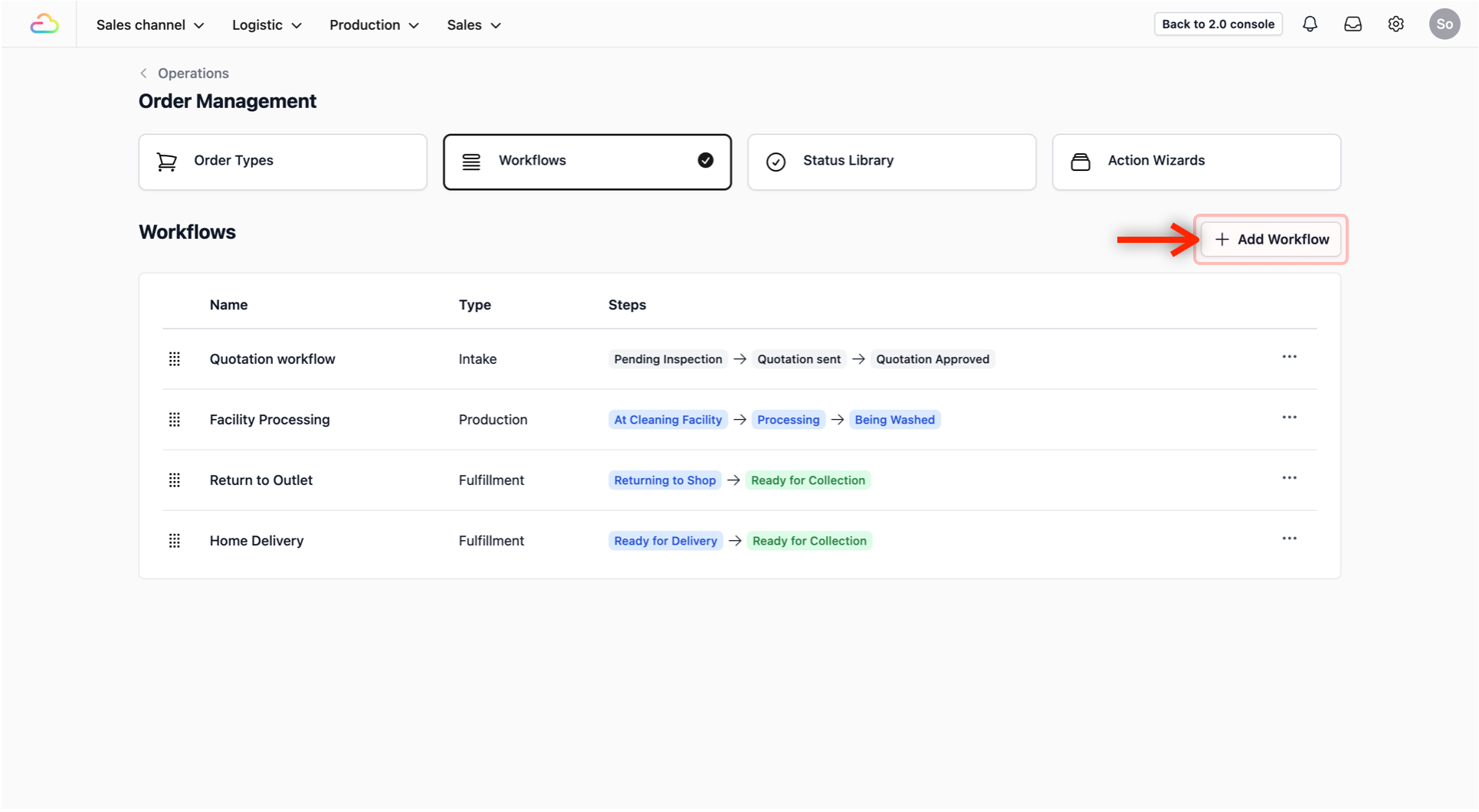 With your custom status names defined, you are ready to build the sequential process that is unique to your business. Your Workflow is the blueprint for how a Sales Order moves from beginning to end.