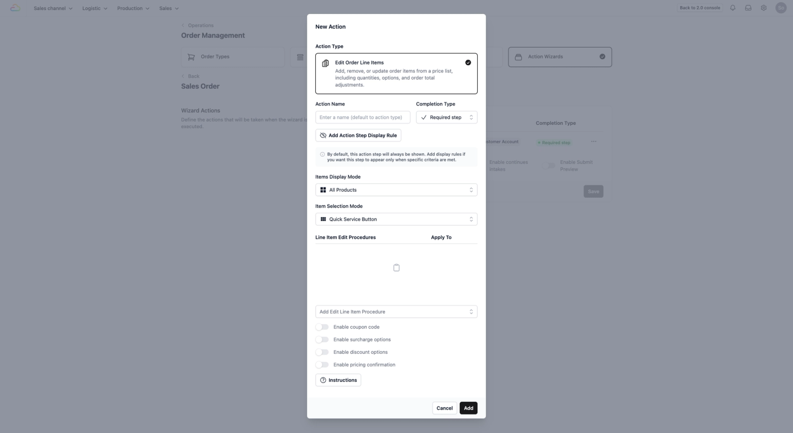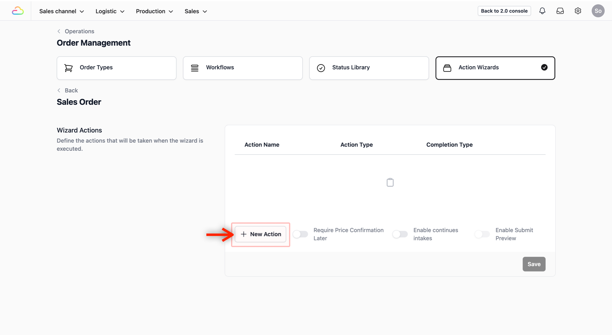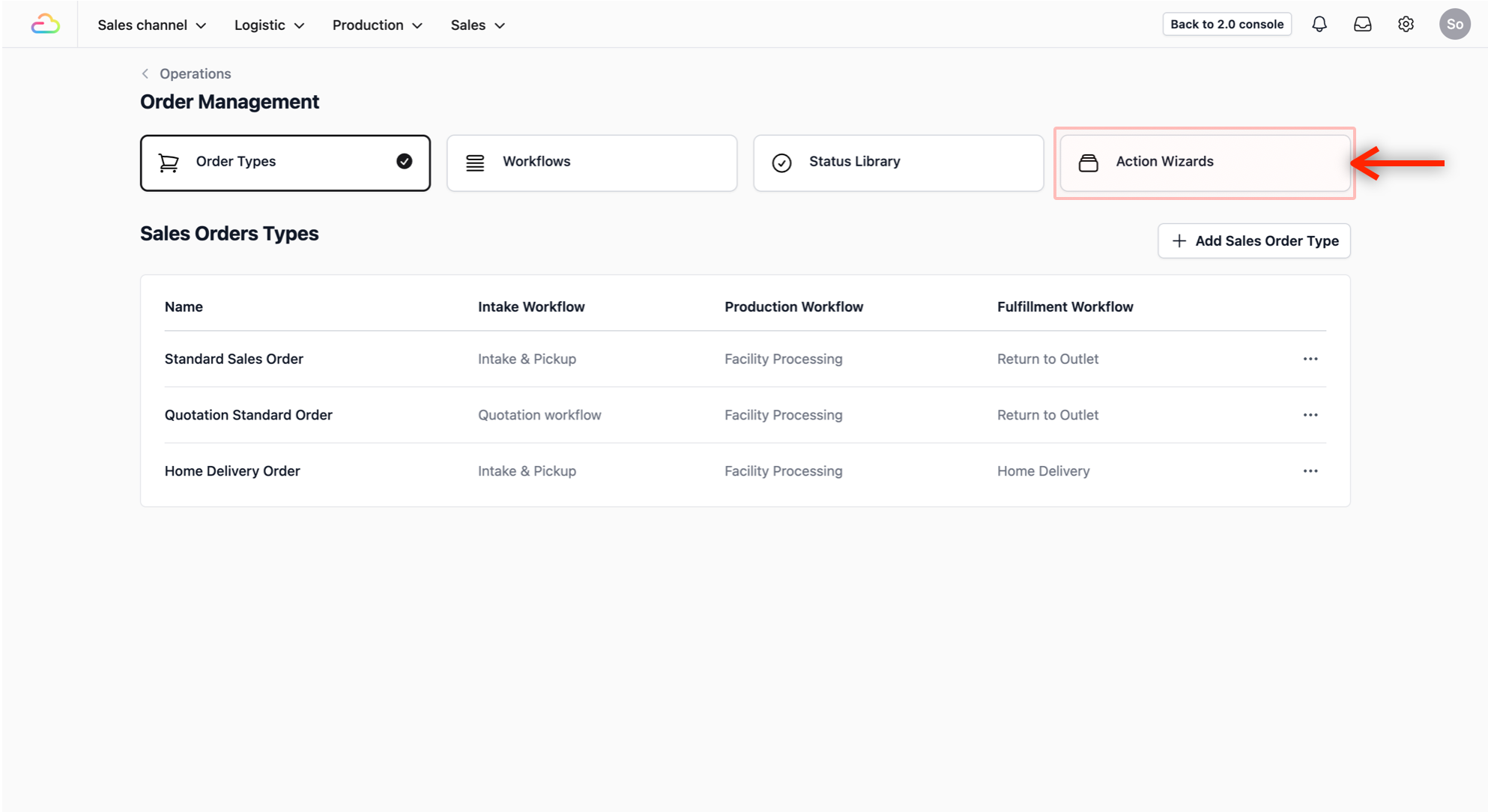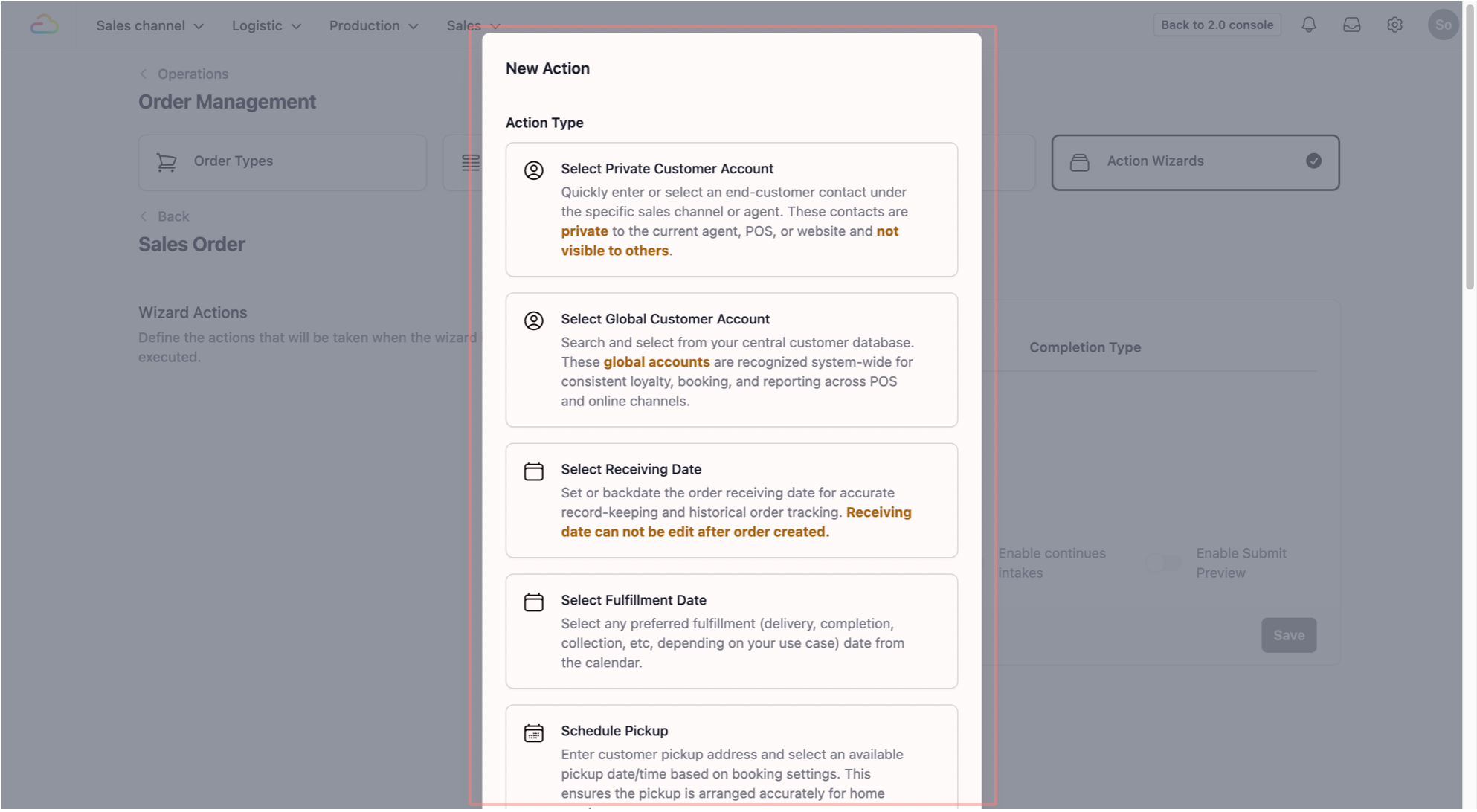 To define the steps your staffs follow when creating a new sales order, you will first need to set up a procedure in the Action Wizards.