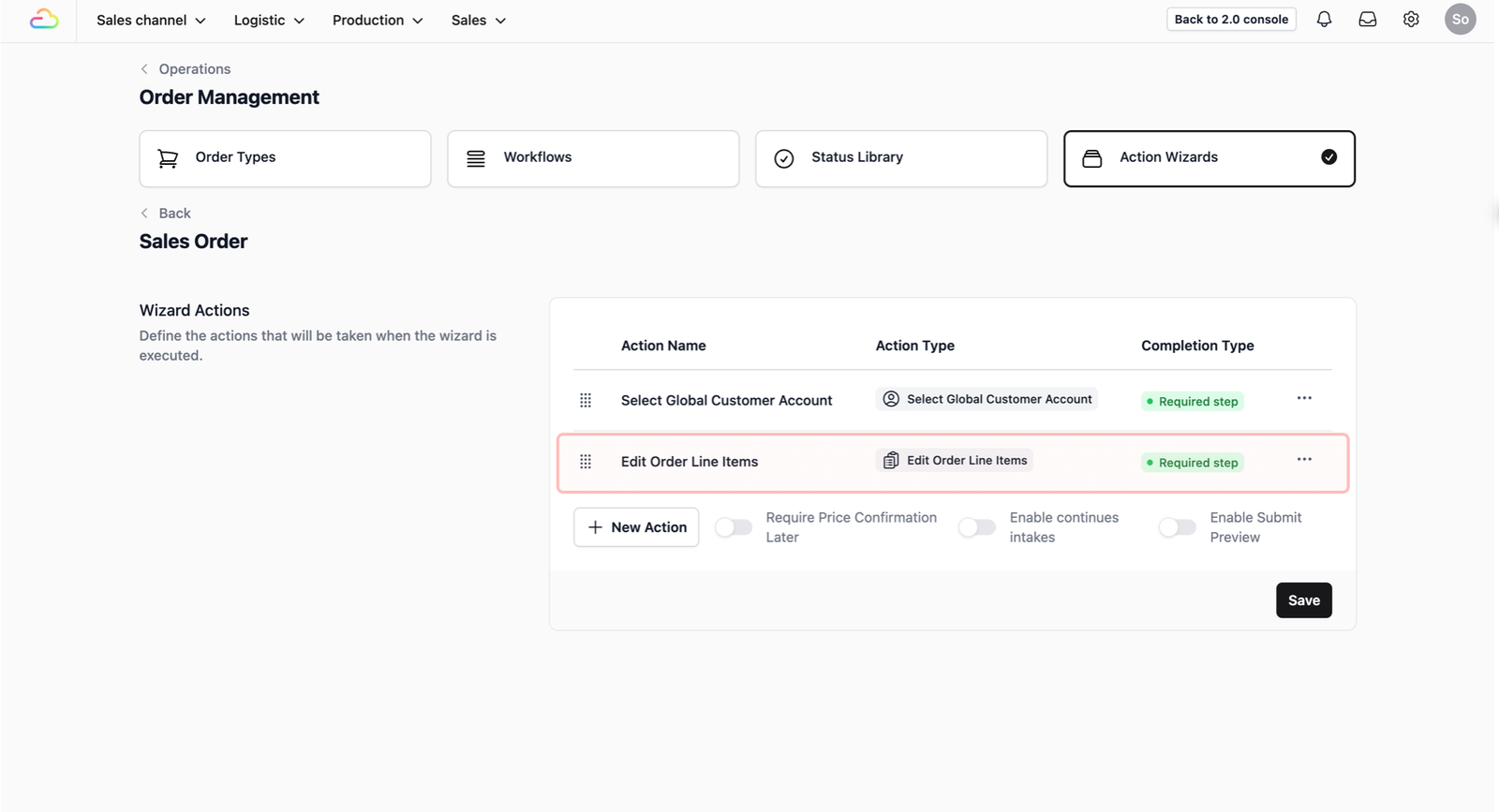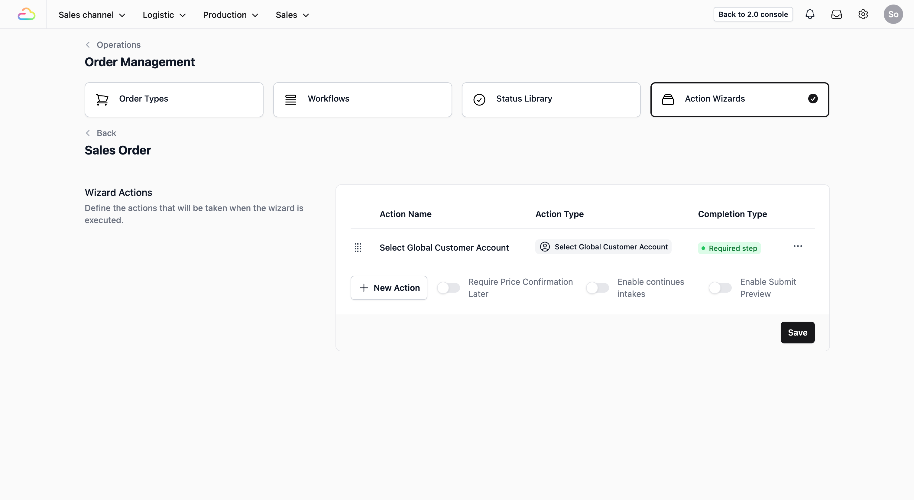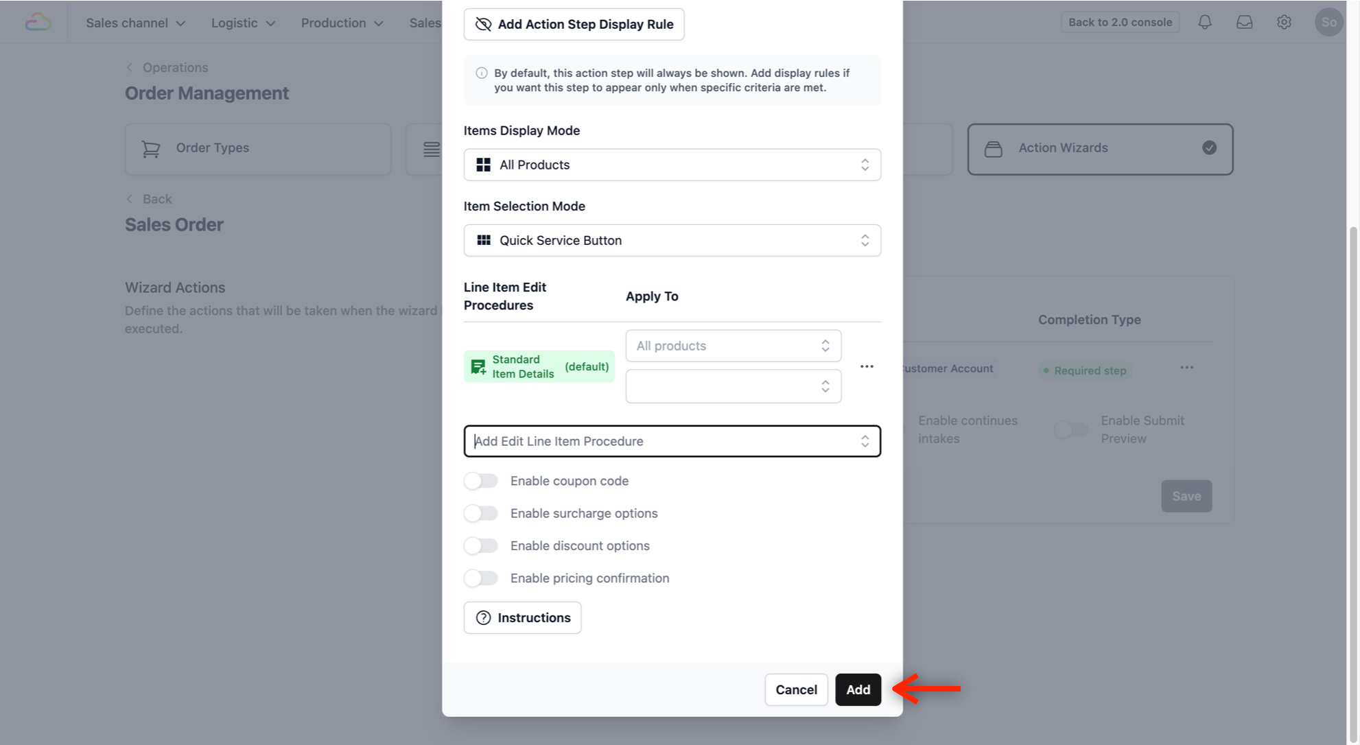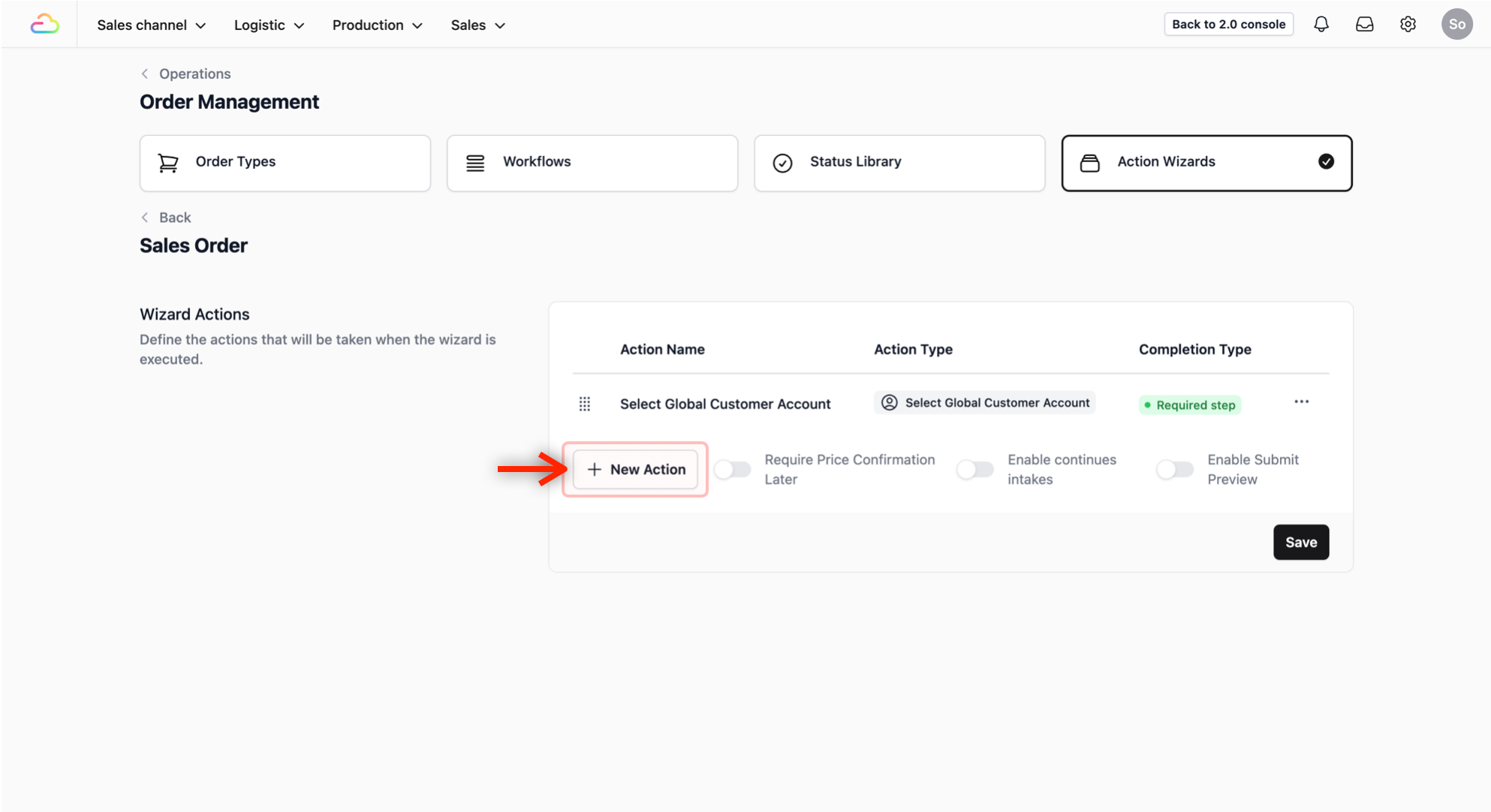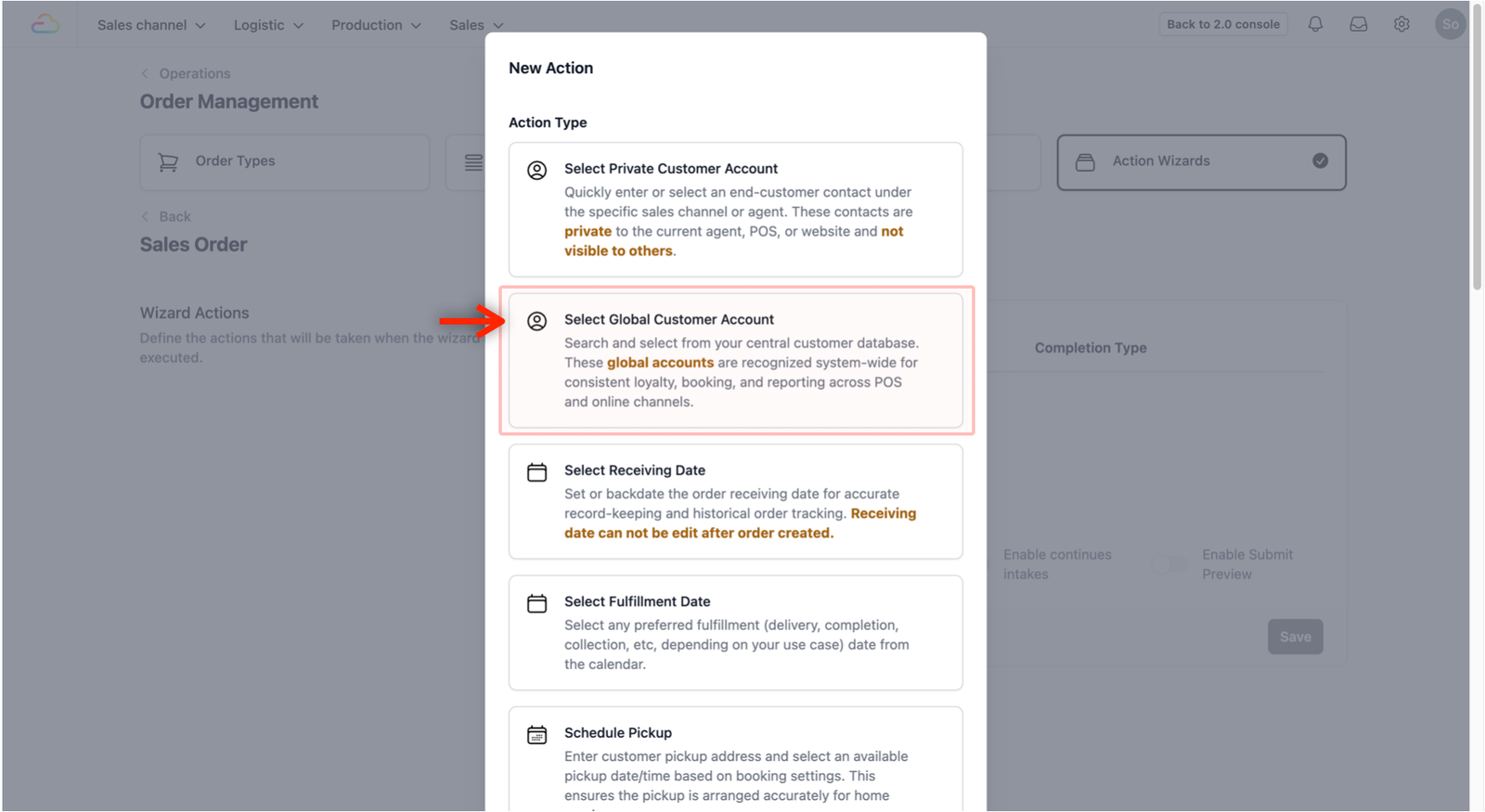 To define the steps your staffs follow when creating a new sales order, you will first need to set up a procedure in the Action Wizards.