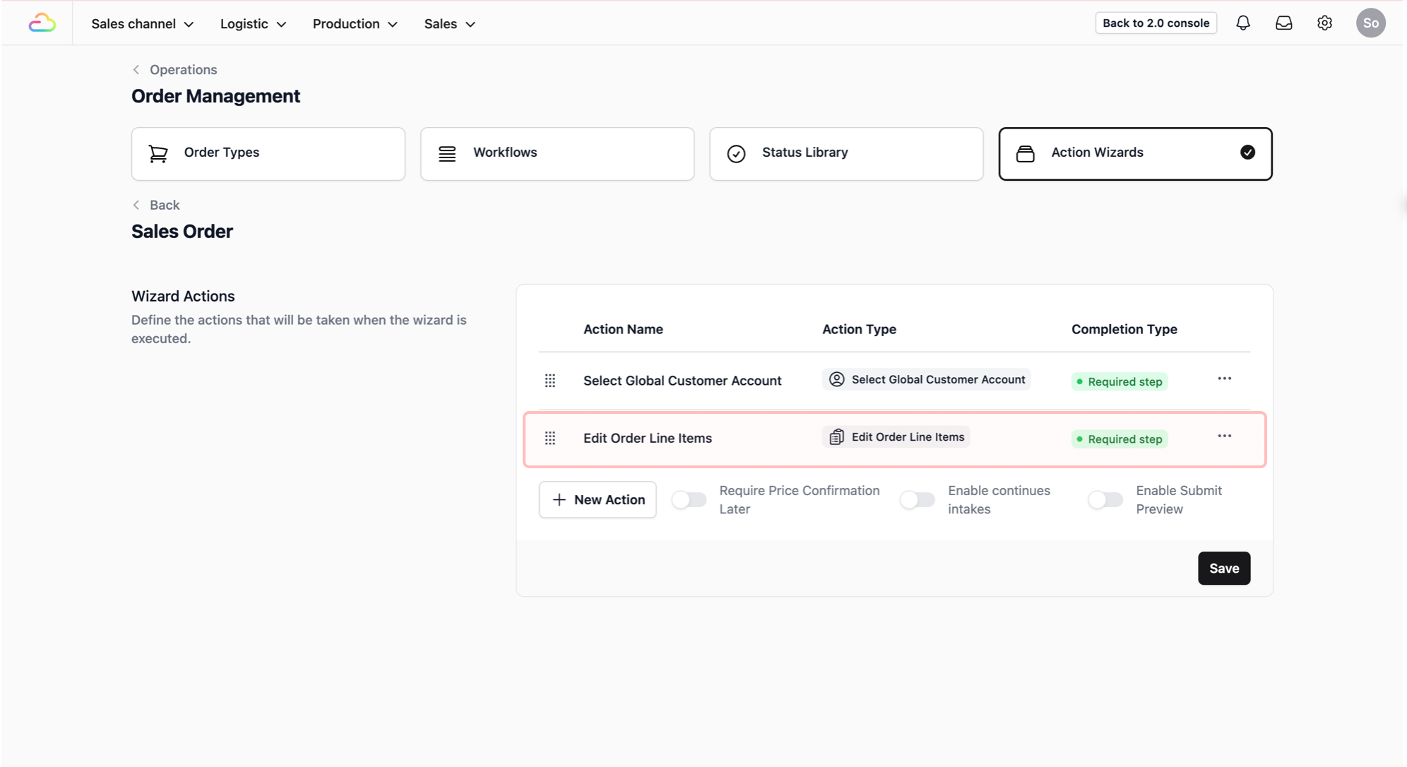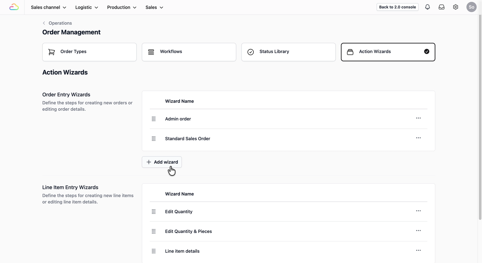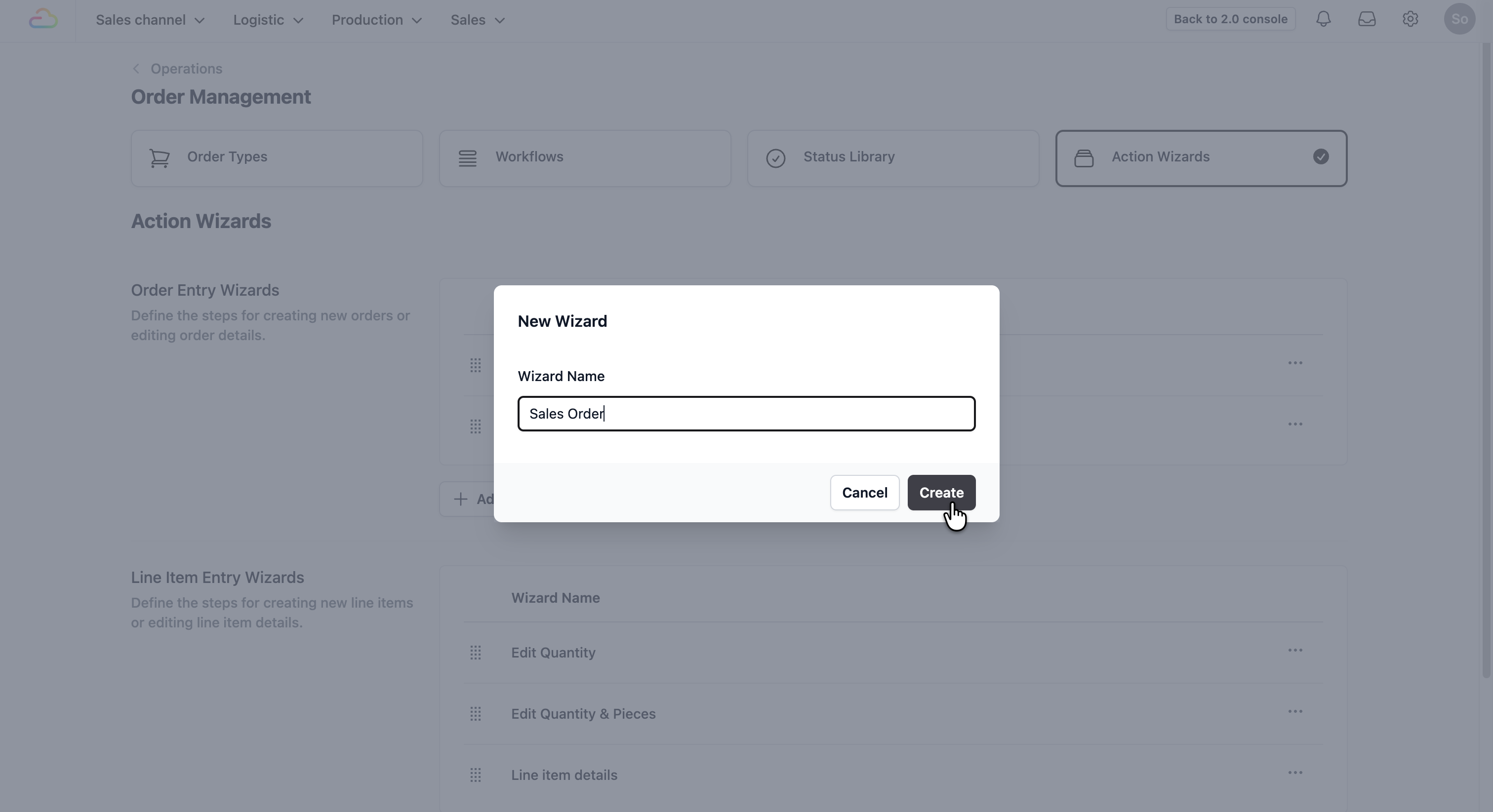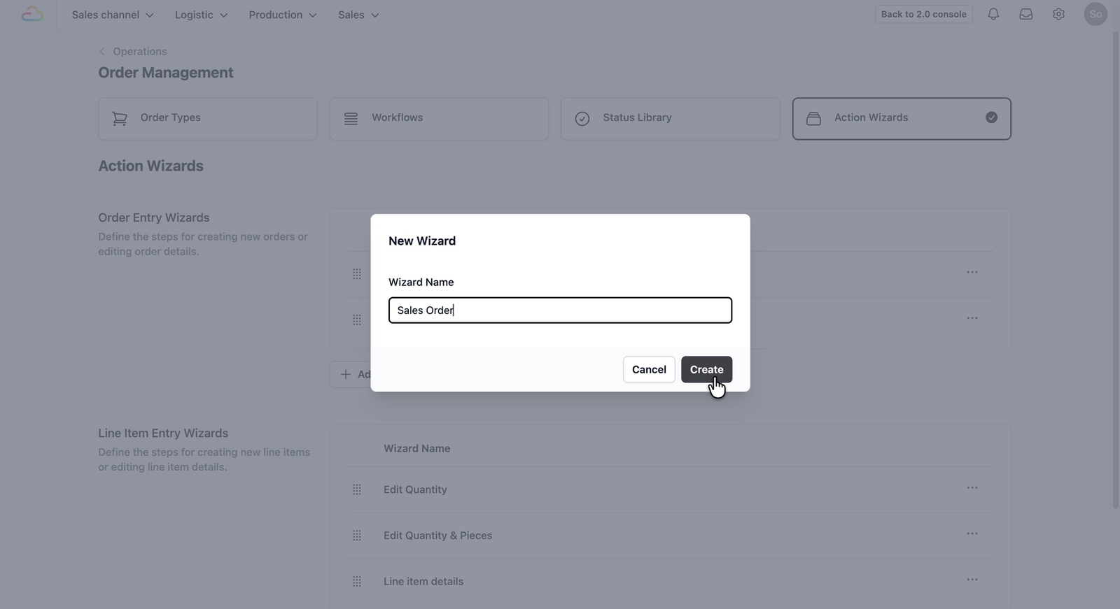 To define the steps your staffs follow when creating a new sales order, you will first need to set up a procedure in the Action Wizards.
