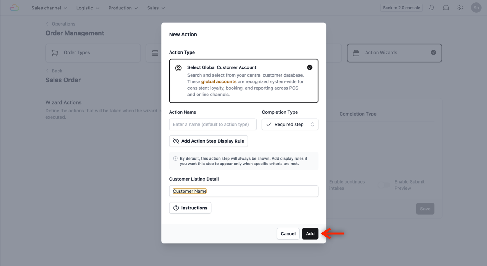 - Add Action Step Display Rule: Used for hiding or showing steps based on specific criteria.