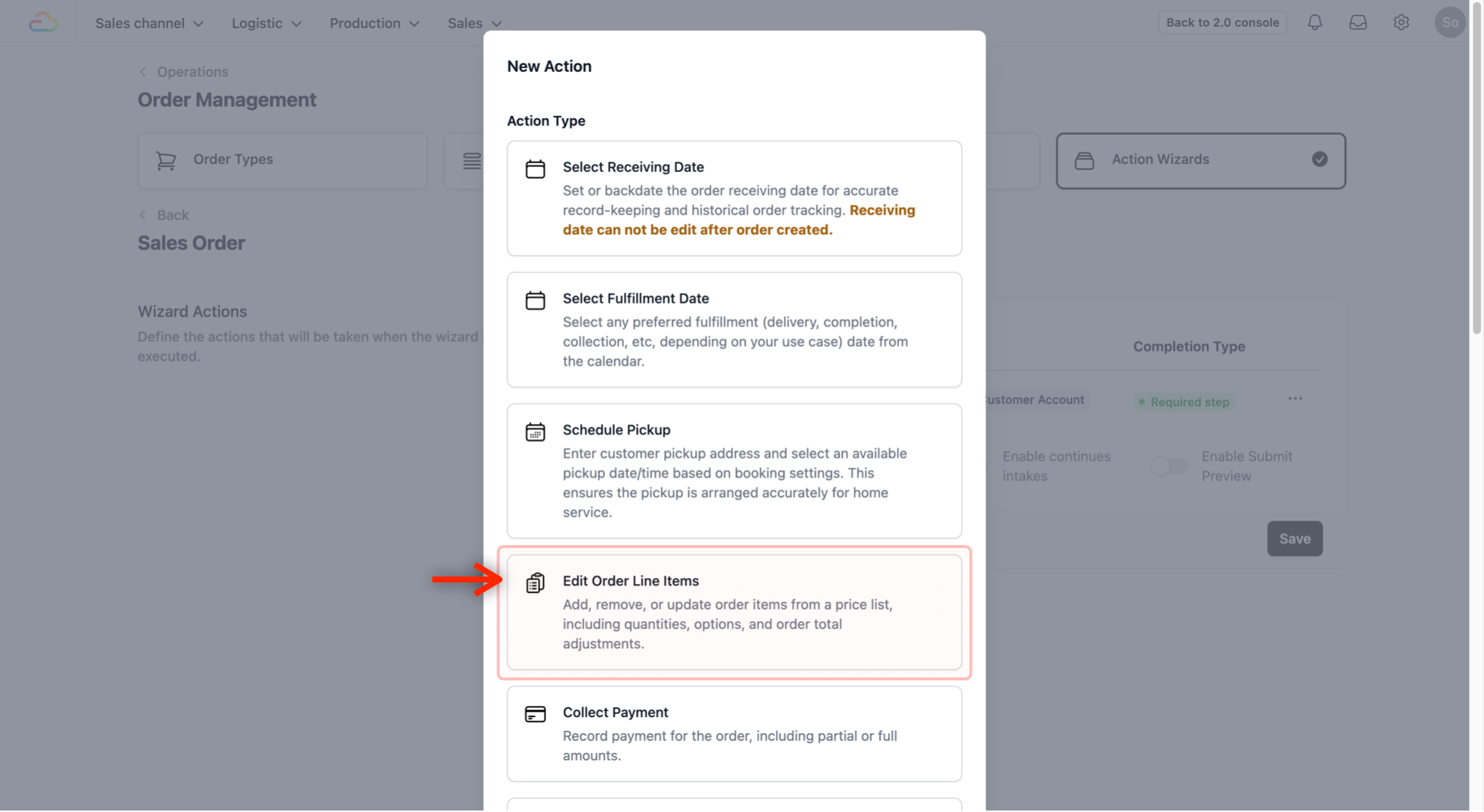 - This time, select Edit Order Line Items from the Action Type list.