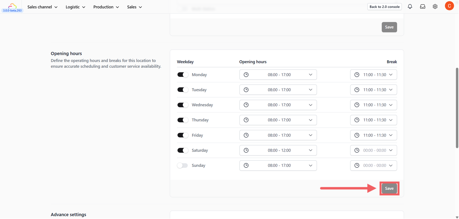StartandEndtime (e.g., 08:00 - 17:00). - Add Breaks: If your store closes for lunch, set the