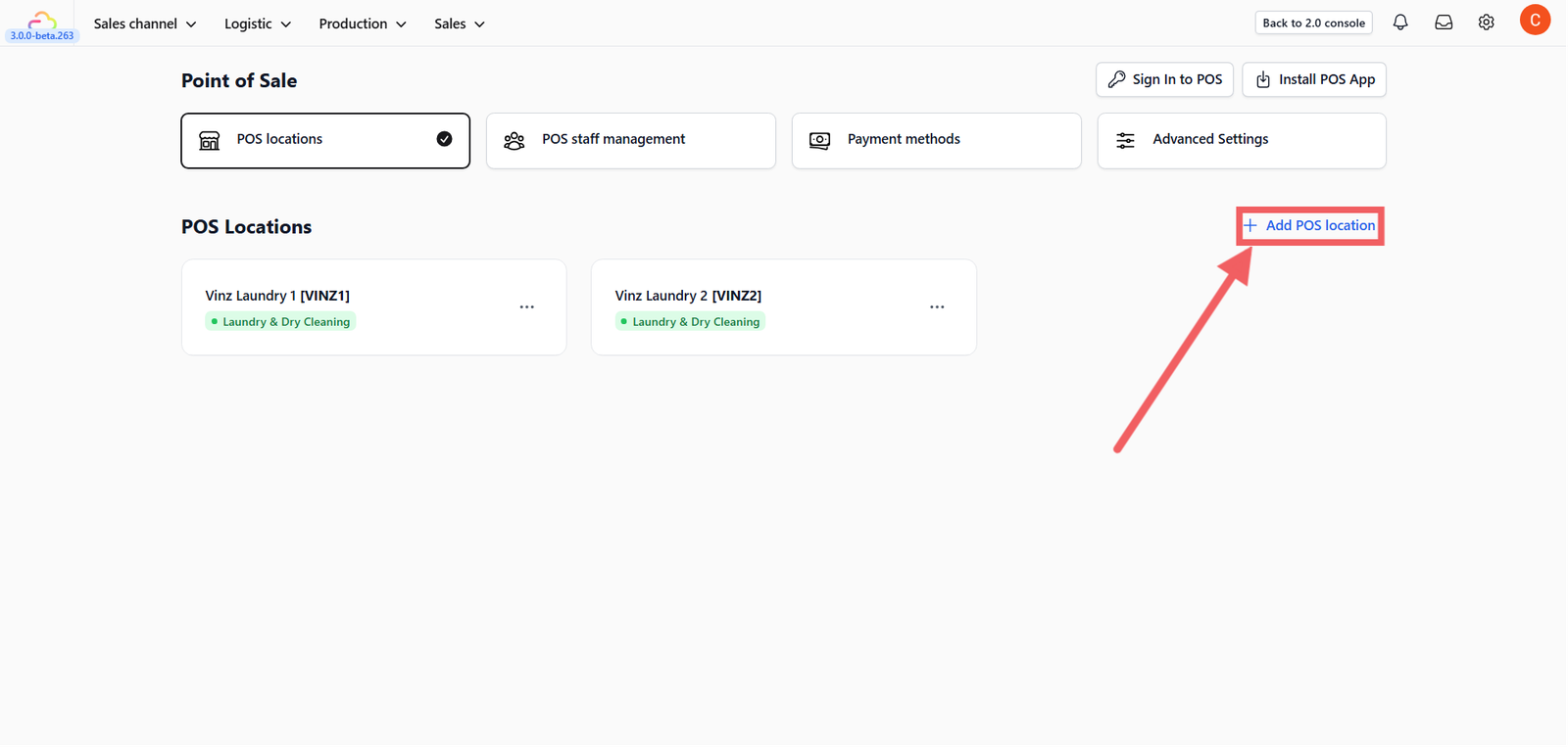 3. Click the + Add POS Location button.