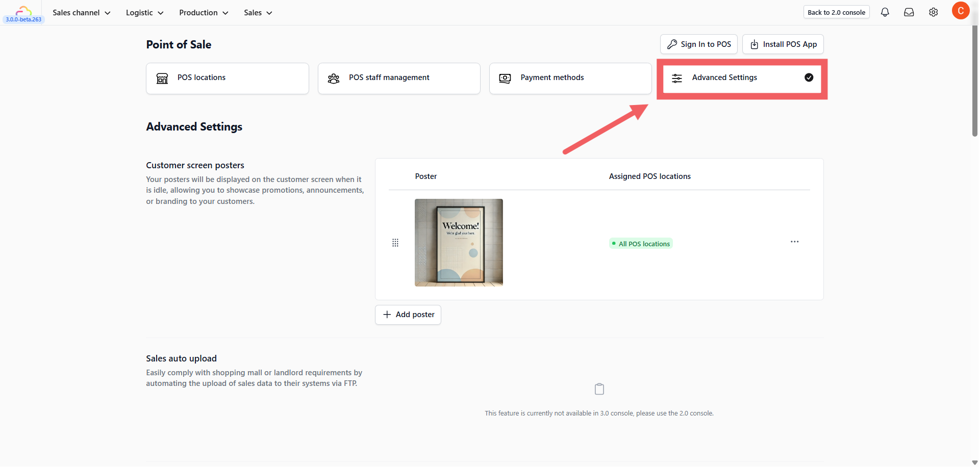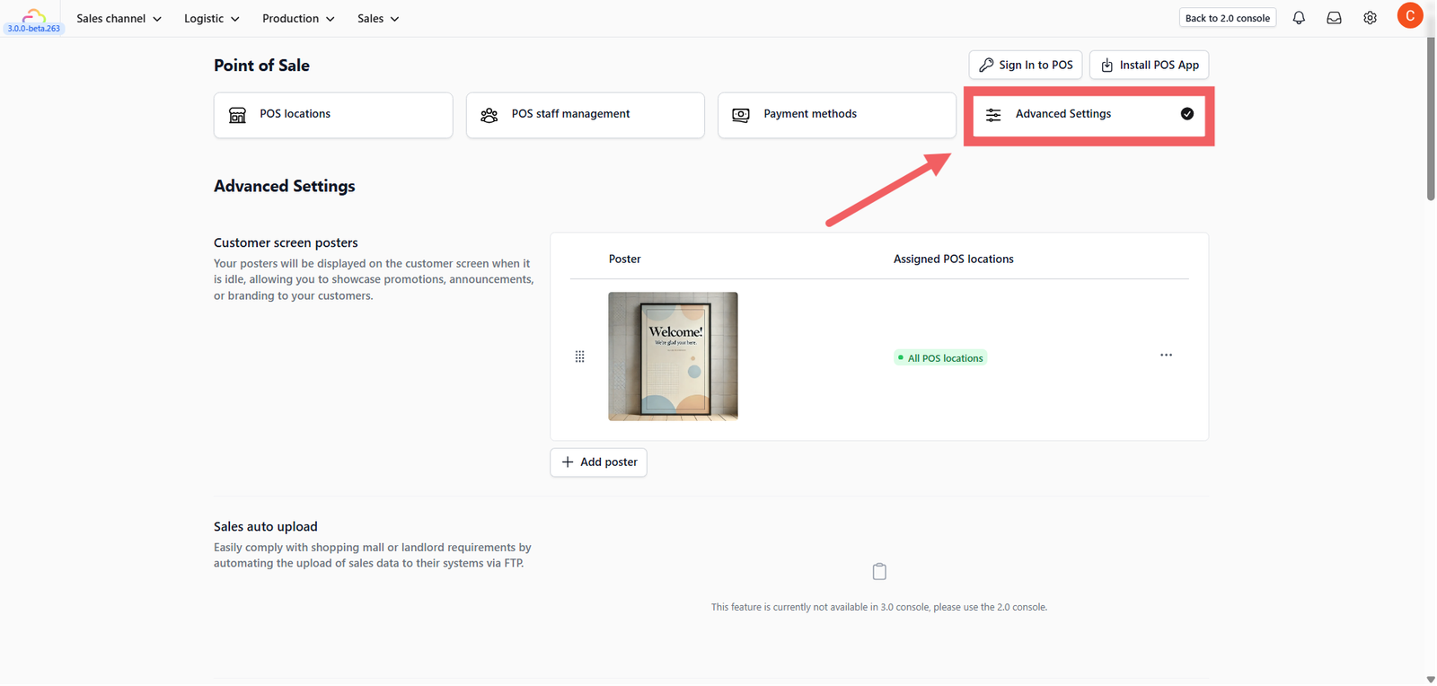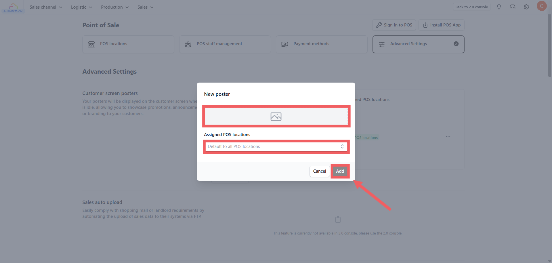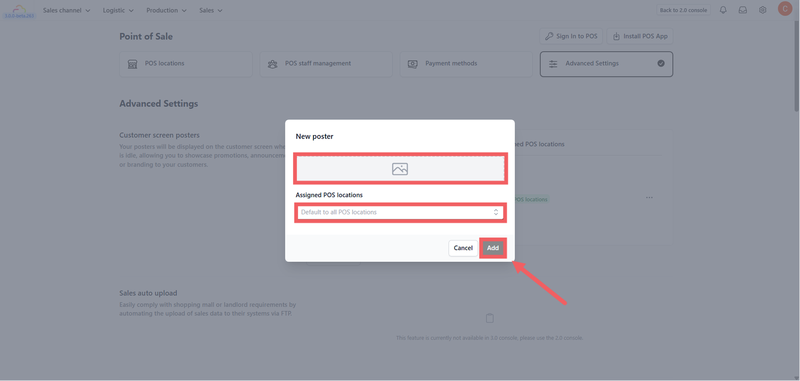 2. In the Customer screen posters section, click + Add poster.