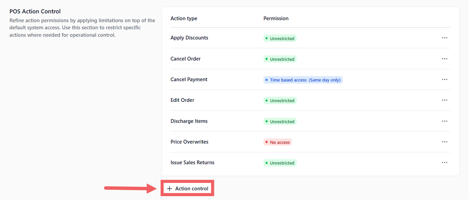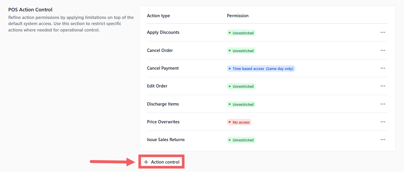 - Set to No Access for staff to prevent unauthorized price changes.