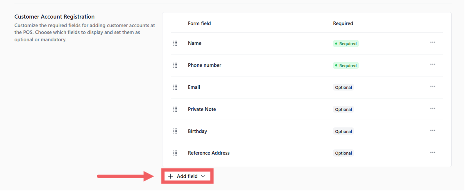 Control what information staff must collect when registering a new customer at the POS.
