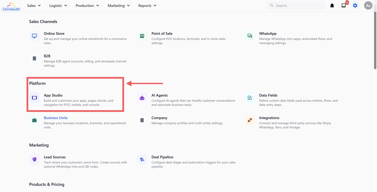 Under the Platform section, click App Studio.