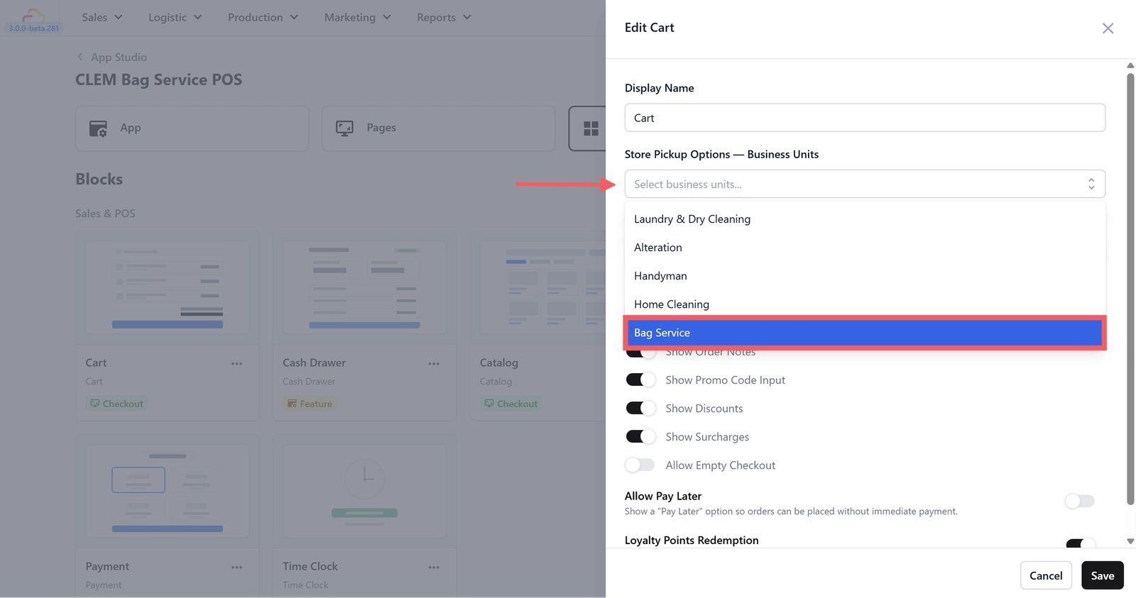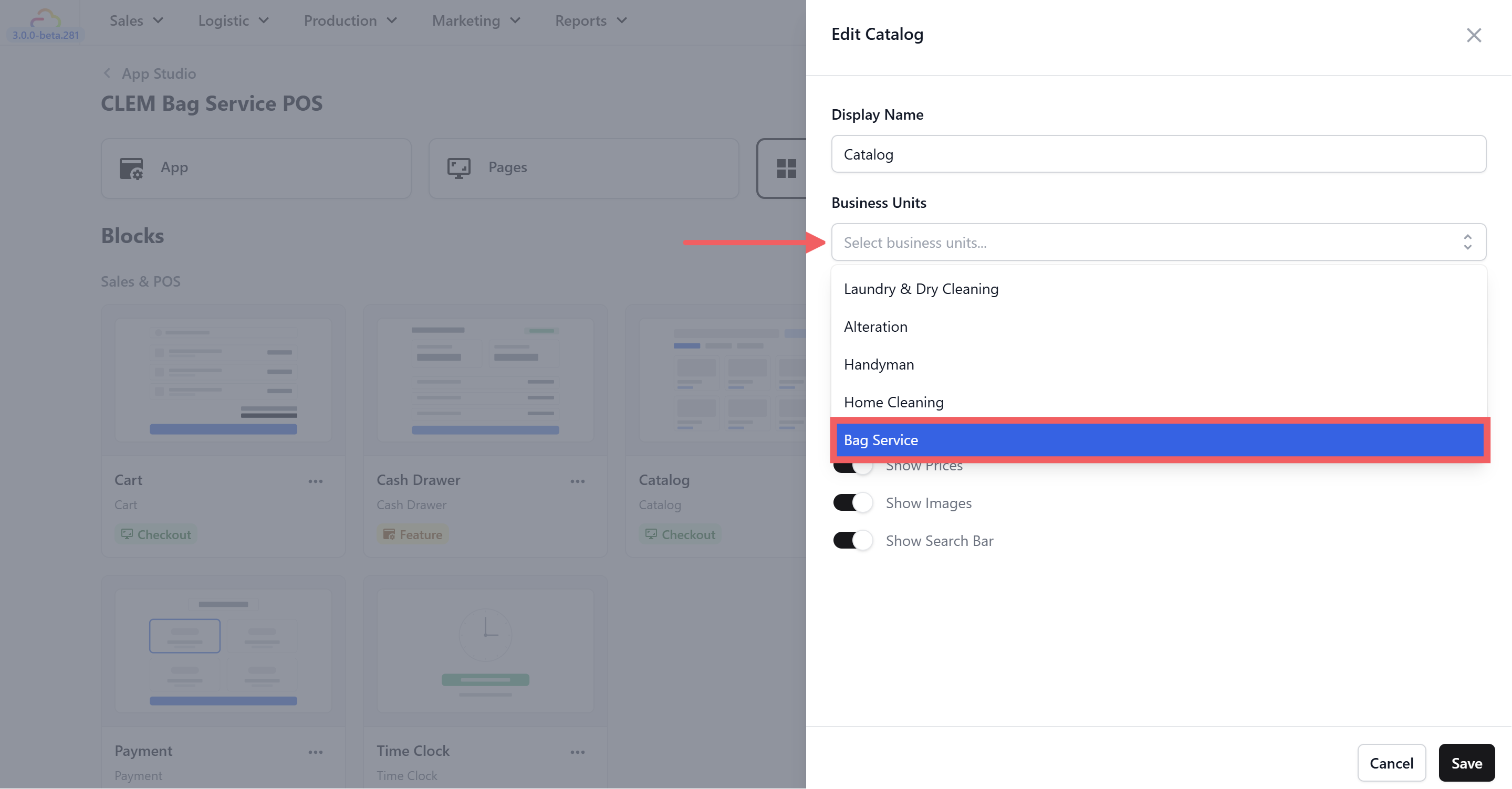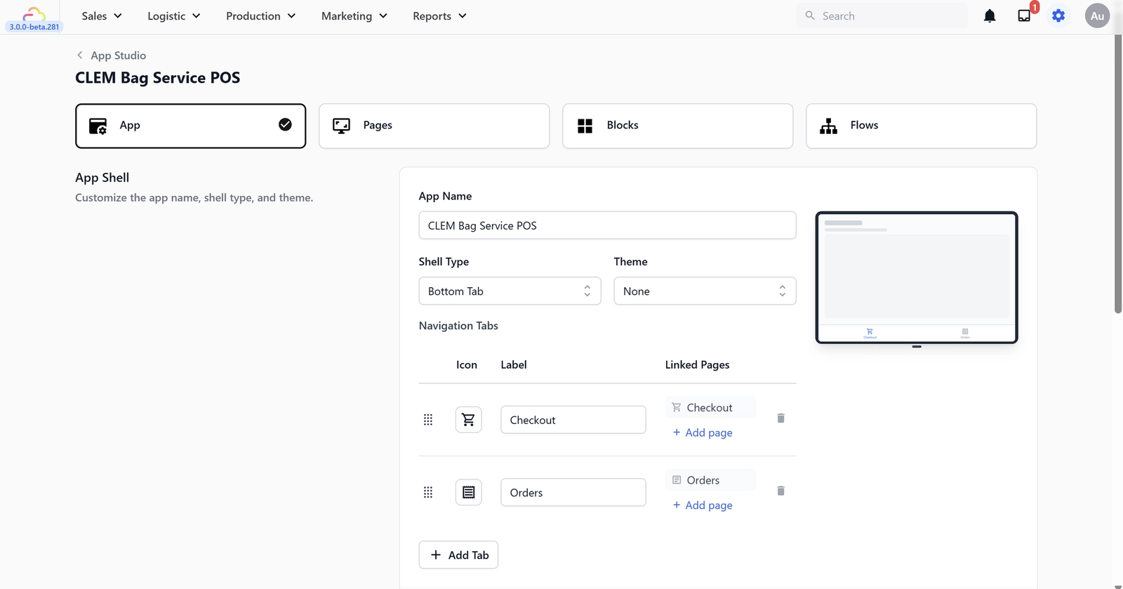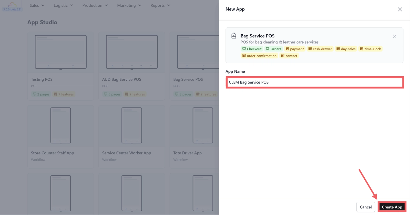 - Go back to App Studio and open your POS app.