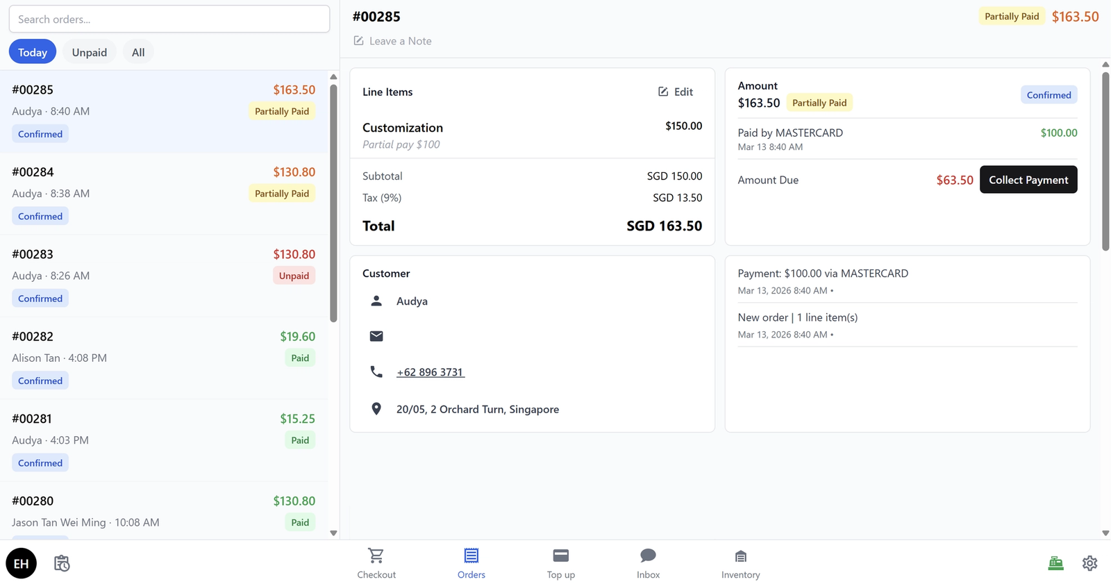 Click Save when you are done, then head back to your POS to see the updated order detail screen.