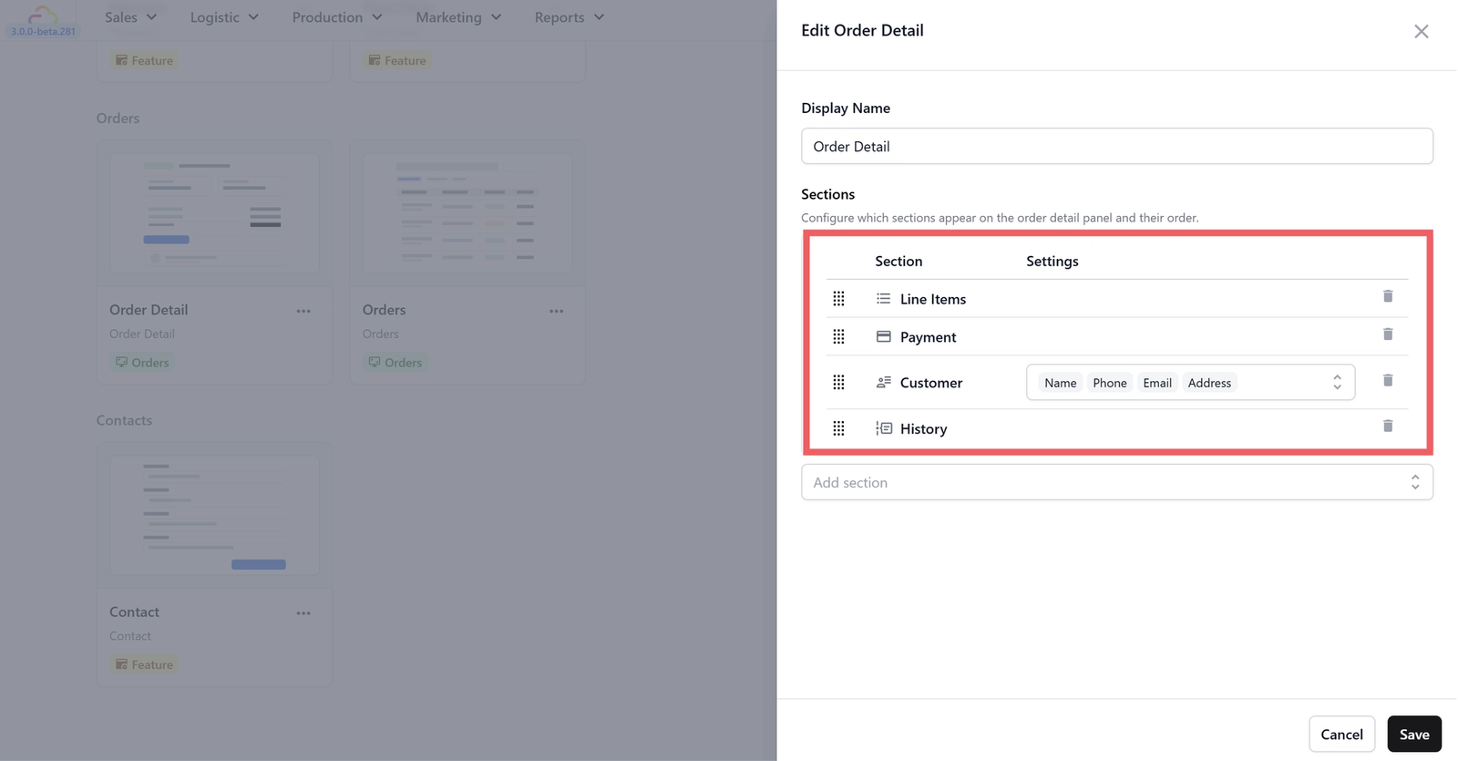 For the order details, you can add extra sections to the screen to help your staff manage orders better.