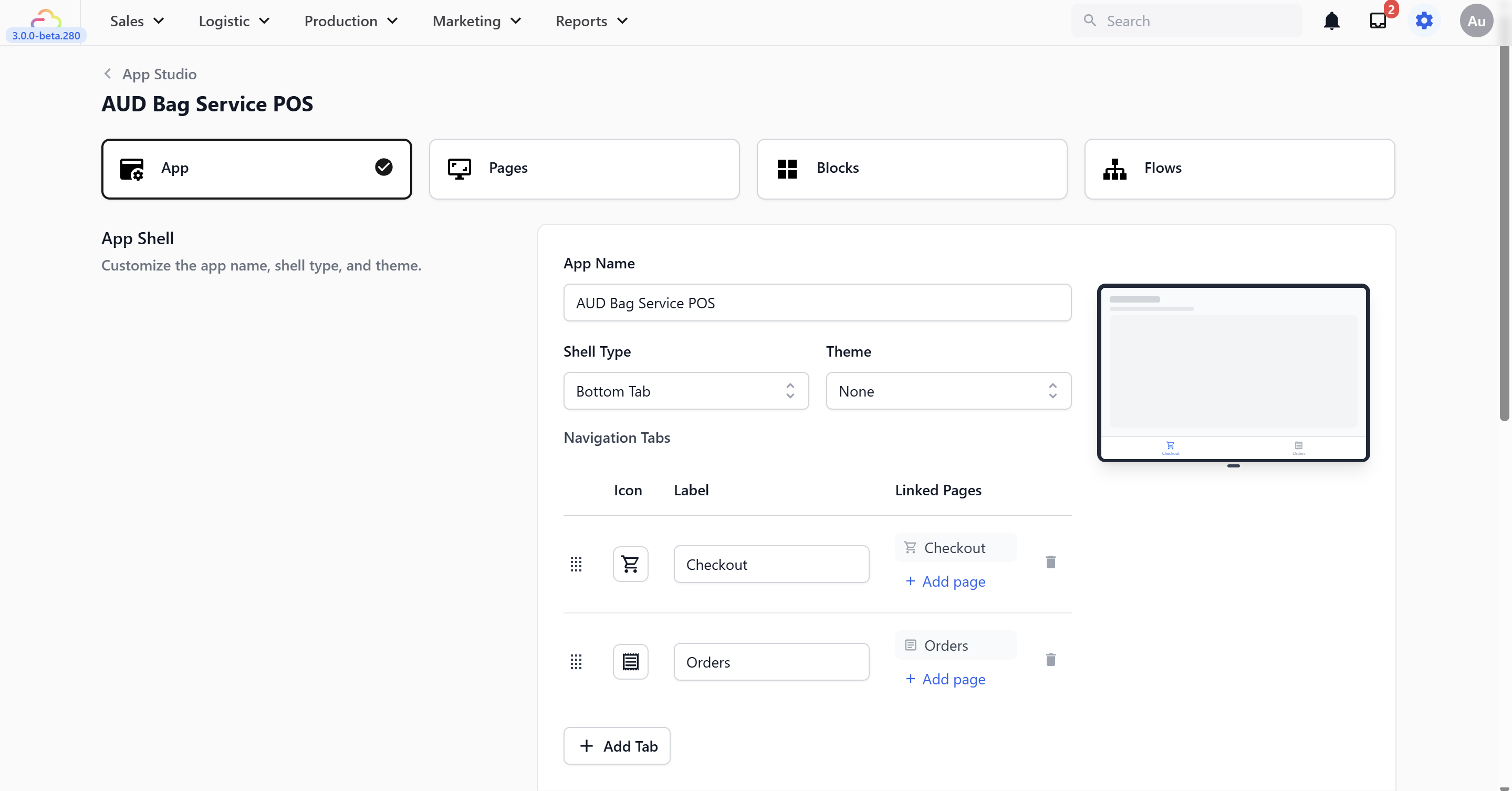 - Go back to App Studio and open your Bag Service POS app.