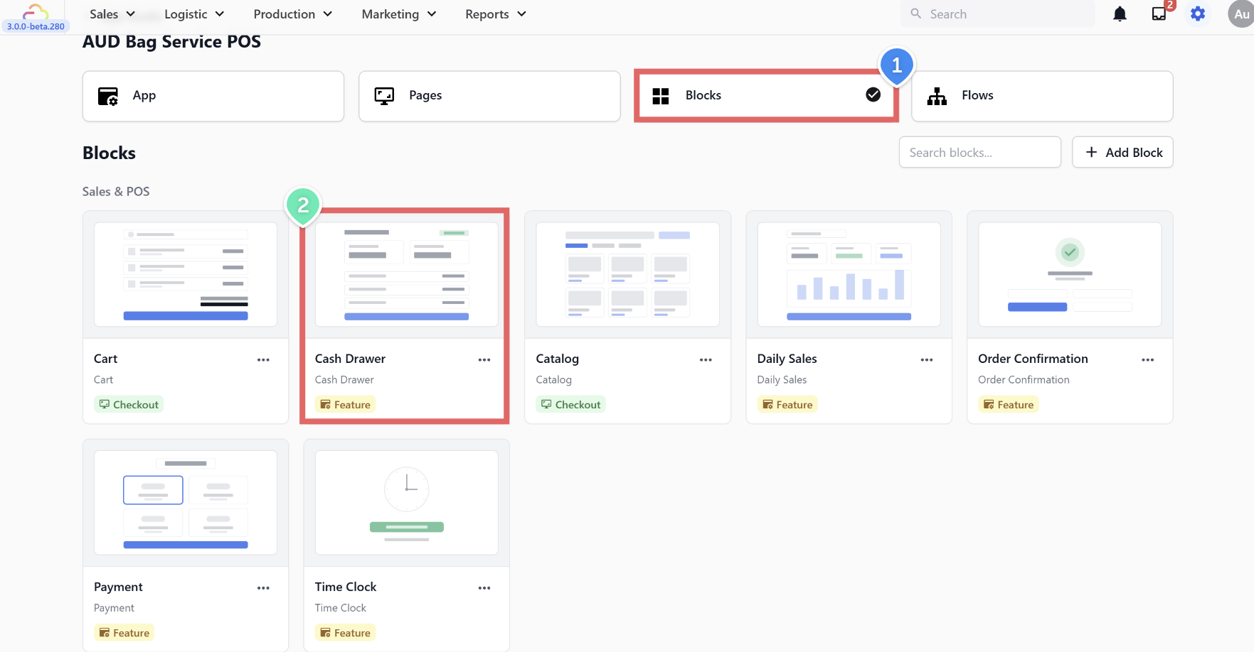- Select Cash Drawer Summary as the block.