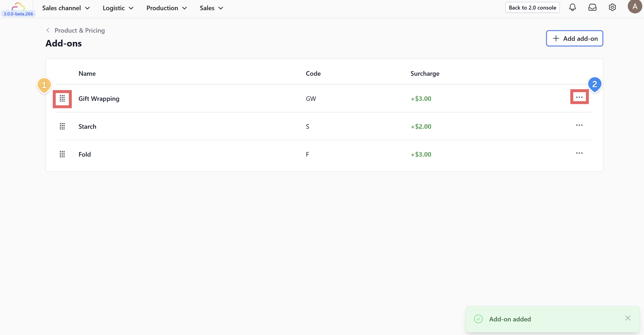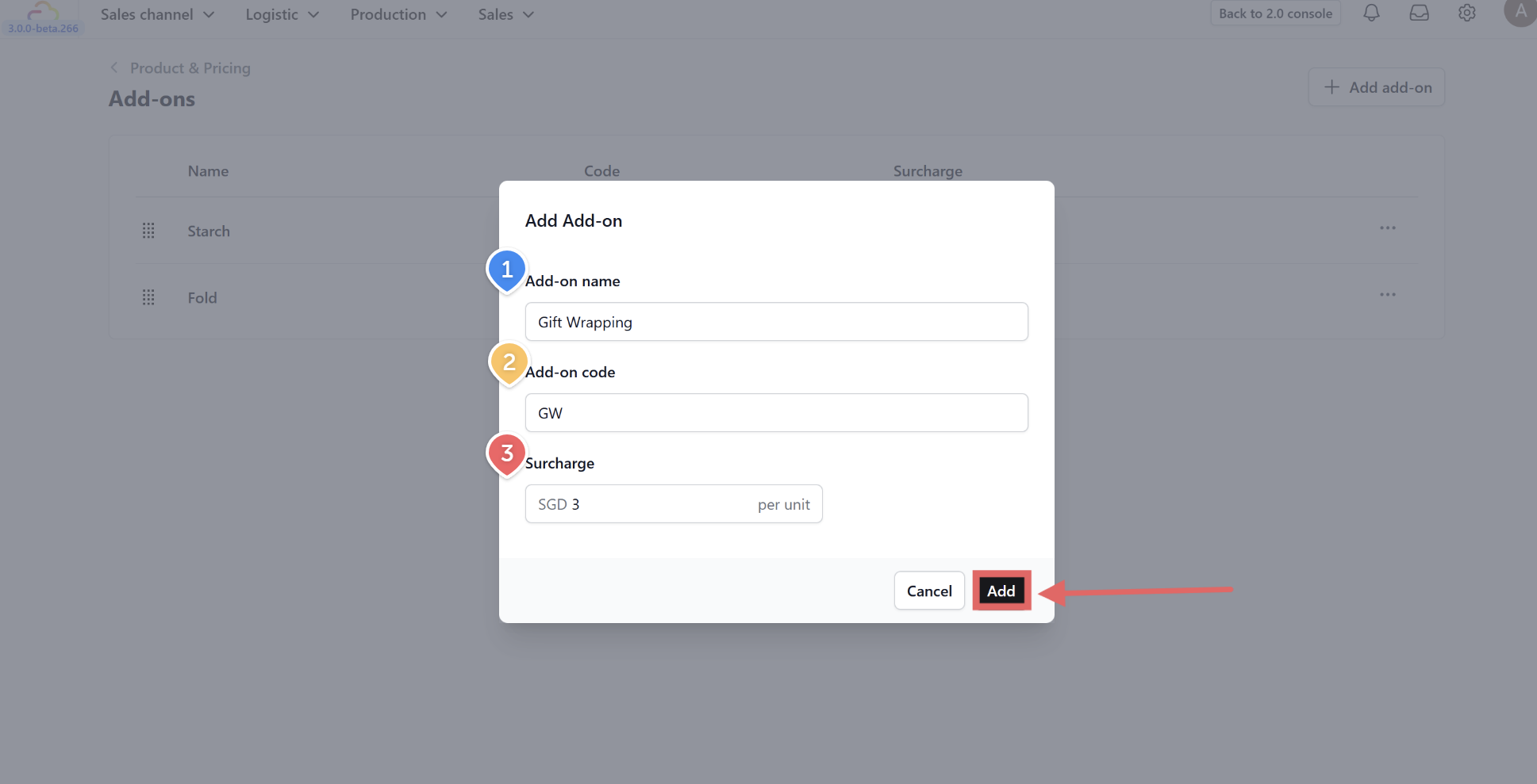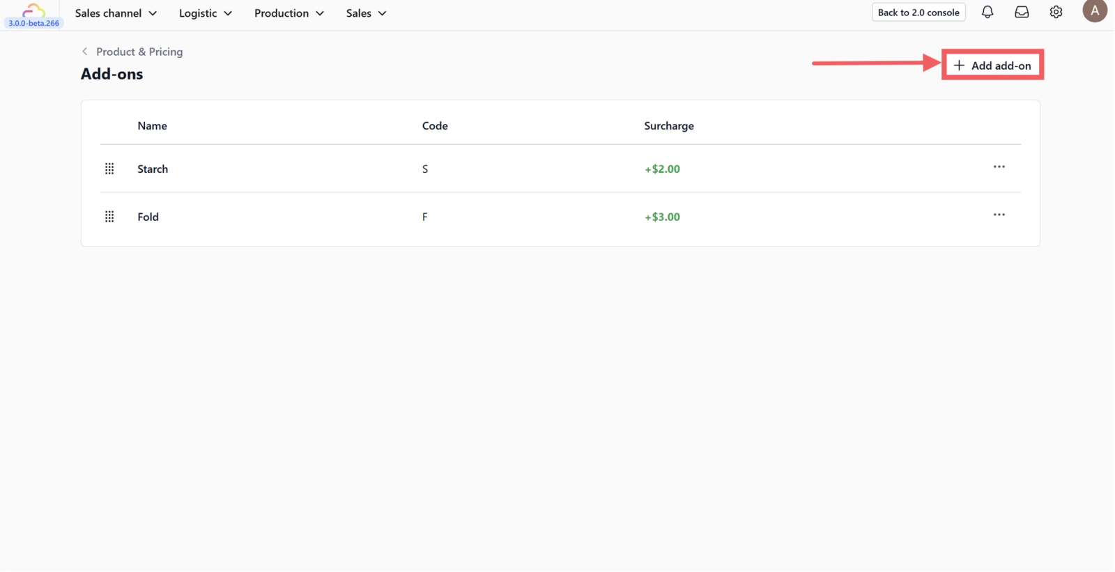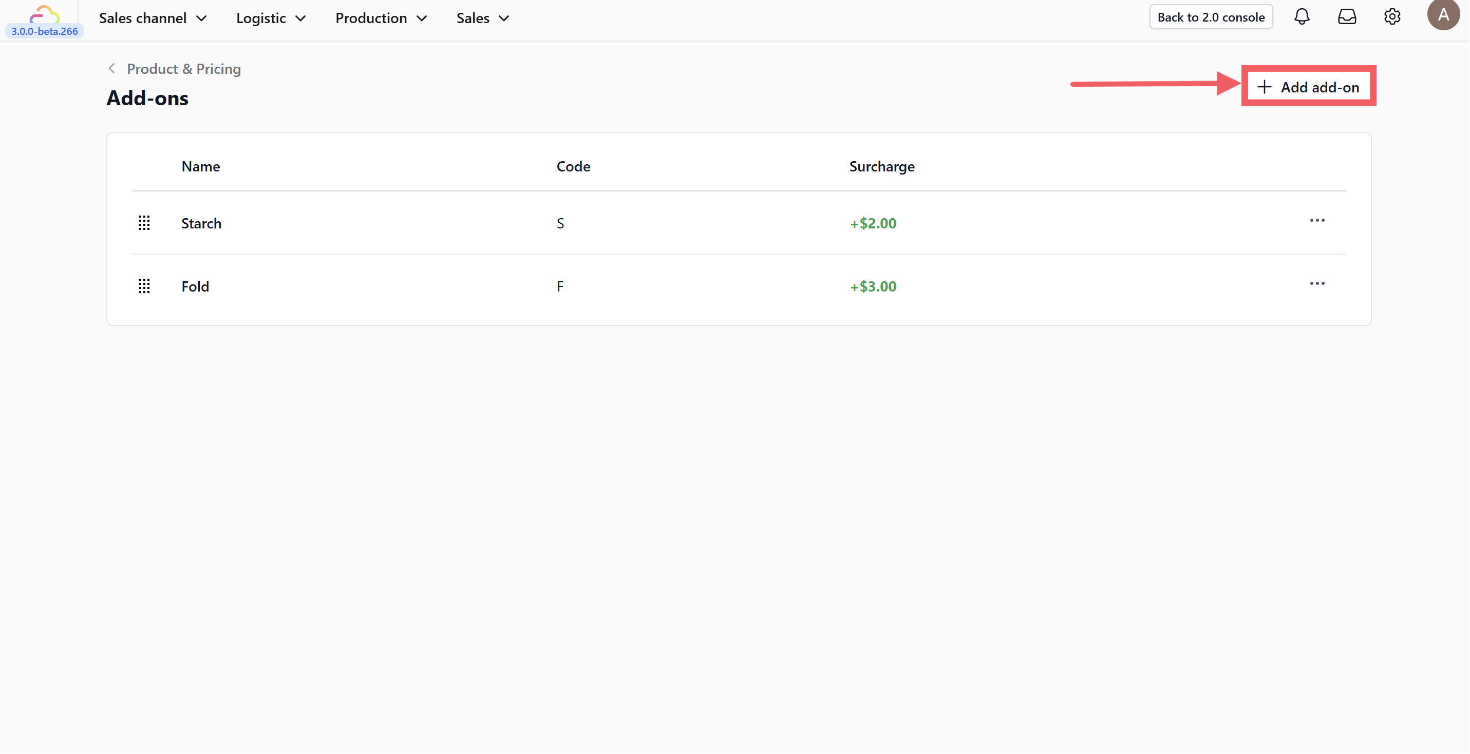 - Add-on name: Enter the name of the service enhancement (e.g., Gift Wrapping, Starch, Express).