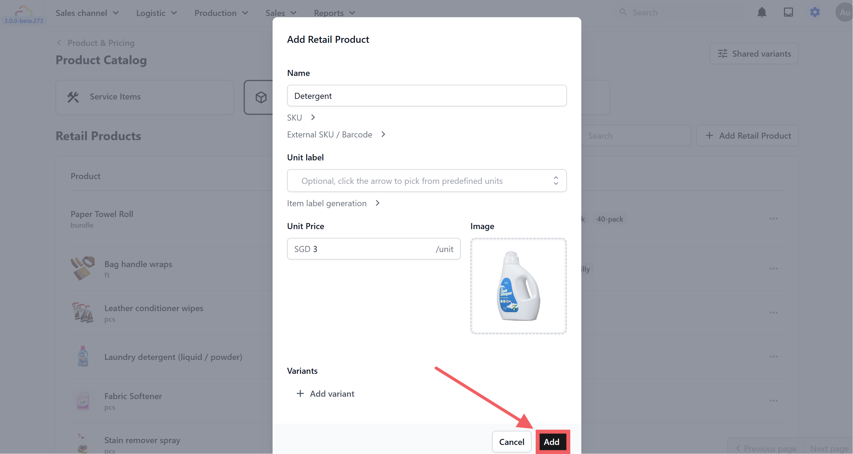 - Unit Label: Select a label that describes how the product is measured or sold (e.g., "pcs," "pack," "bundle").